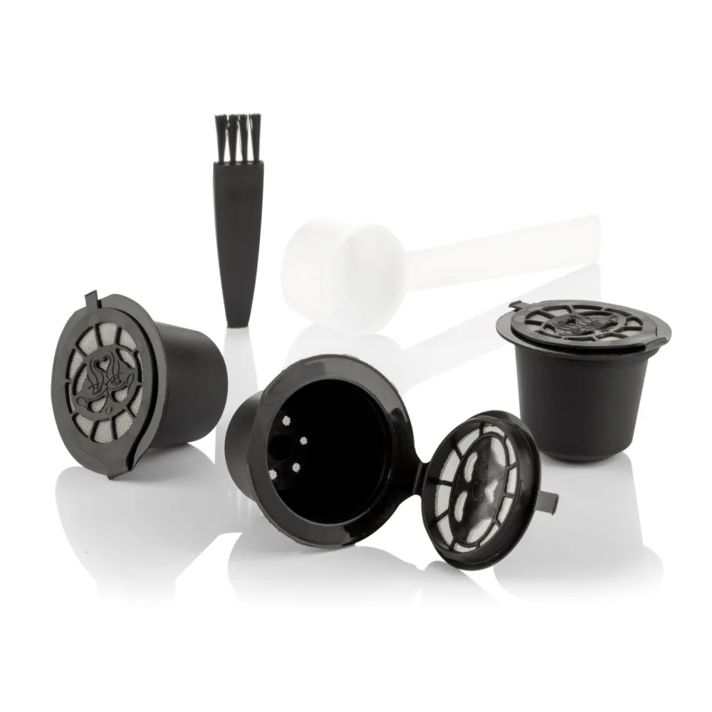 A set of 3 reusable coffee capsules, perfect for enjoying a good cup of coffee without harming the environment since their use considerably reduces the waste that originates from conventional disposable capsules. The set includes a small teaspoon to deposit the coffee inside the capsule and press it depending on the desired intensity. It also includes a small brush to make cleaning the capsule easier. These practical coffee capsules are washable and very easy to use, you just need to follow the instructions in the manual included. Each capsule has a use life of approximately 50 uses. In addition, they are very lightweight and hardly take up any space, so they can be taken anywhere and stored easily (in the kitchen, office, etc.). Compatible with coffee machines that use Nespresso capsules.