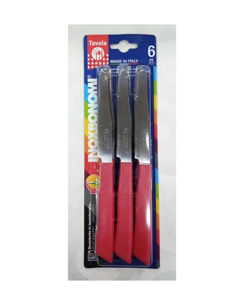 Inox Bonomi BLS 6 PCS TABLE KNIFE CM. 11 Red Italian Knives