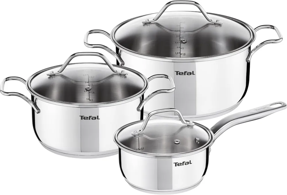 ESSENTIAL SET: The ideal saucepan for delicious yet easy sauces, and the perfect stewpots for crowd-pleasers ranging from spaghetti Bolognese to corn on the cob—or even homemade popcorn