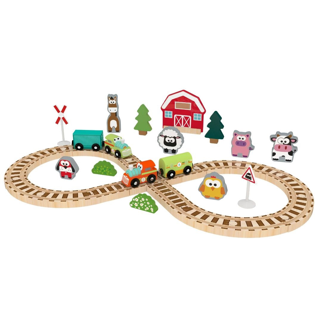 The J'Adore Farm Train Set invites children to explore their imagination while engaging with friendly farm animals. Designed by Quercia-Delvigne, this eco-friendly wooden playset fosters creativity and skill development.