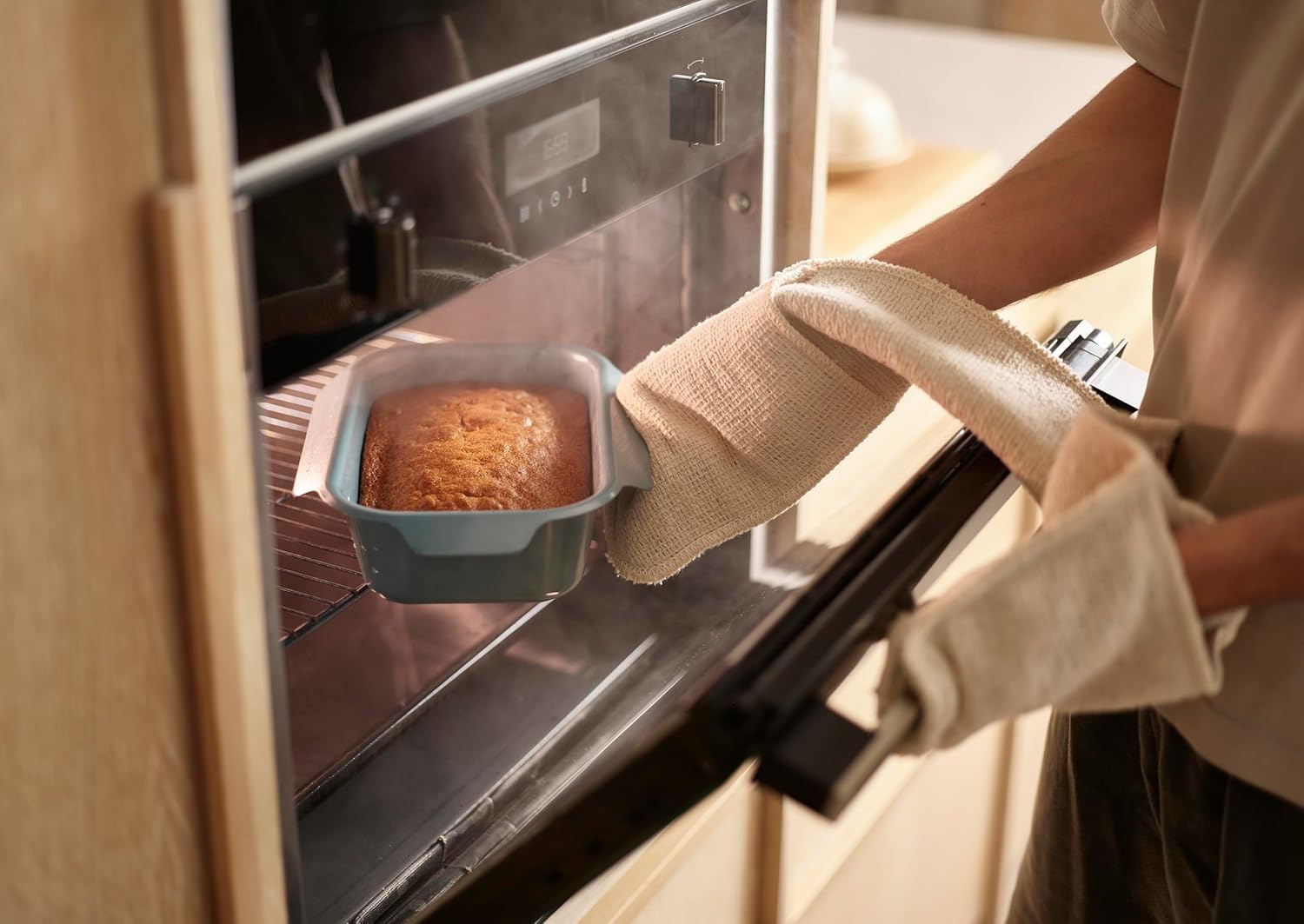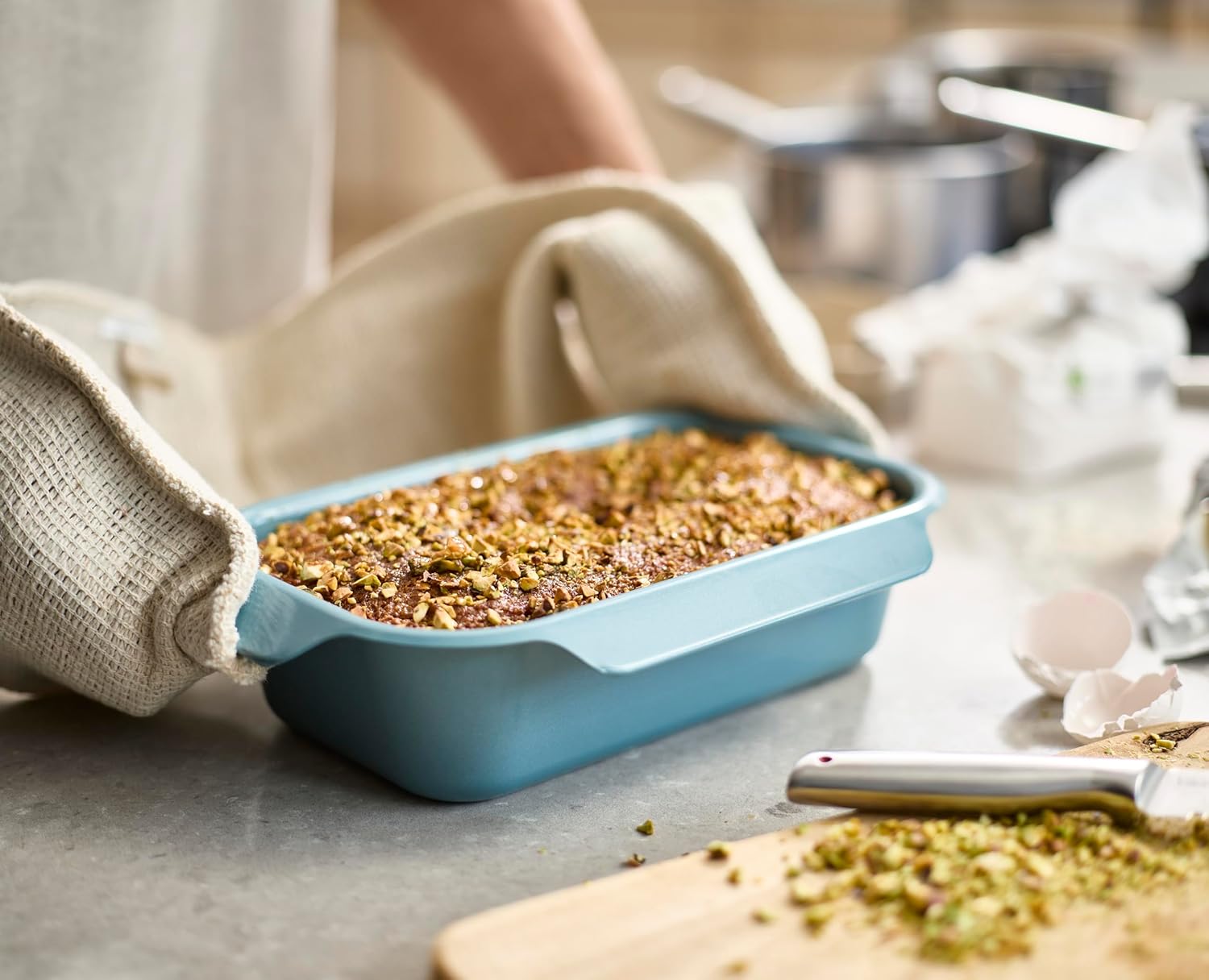 Easy-pull handles on all sides, designed for easier handling with oven gloves