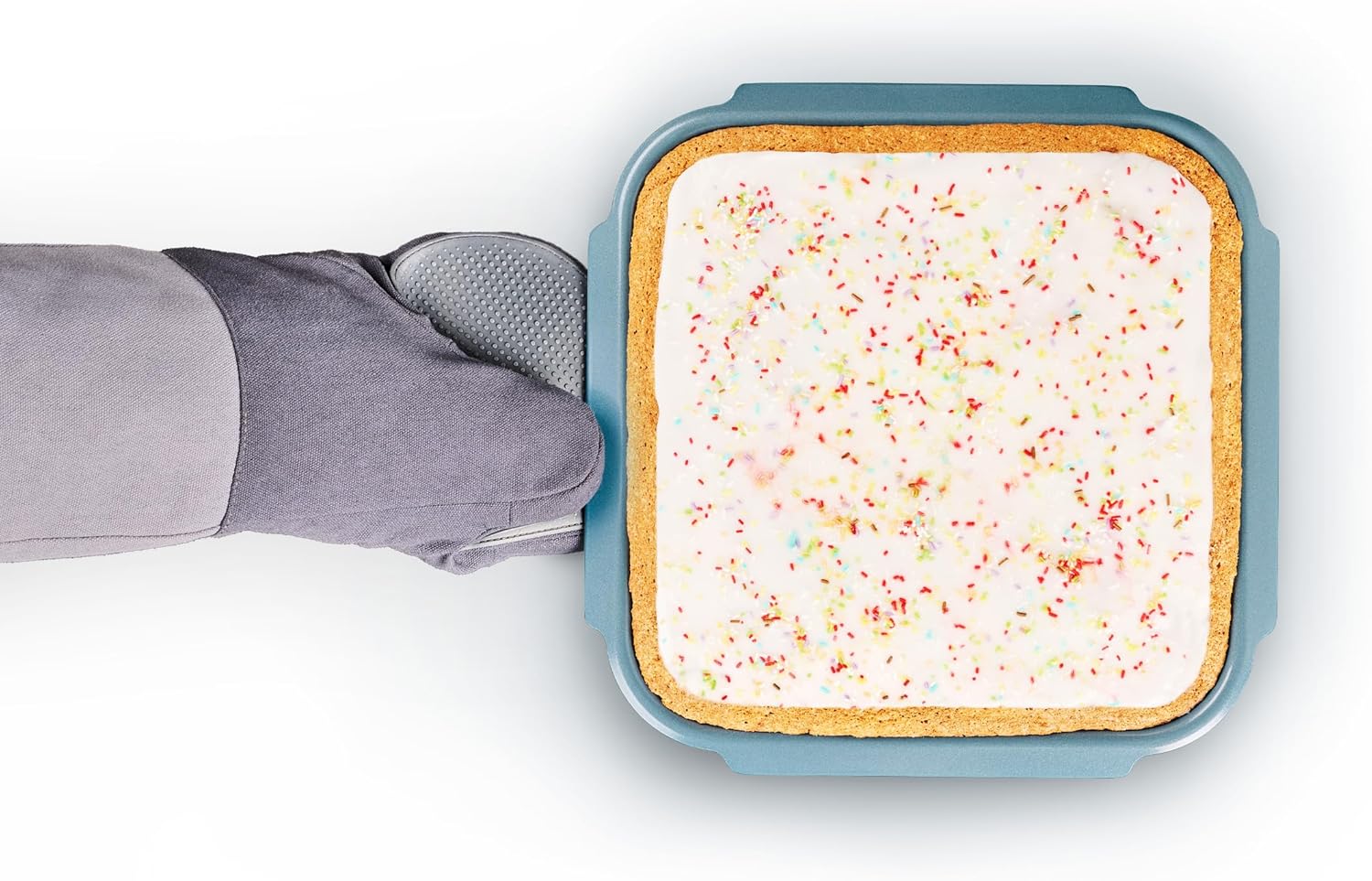 Easy-pull handles on all sides, designed for easier handling with oven gloves