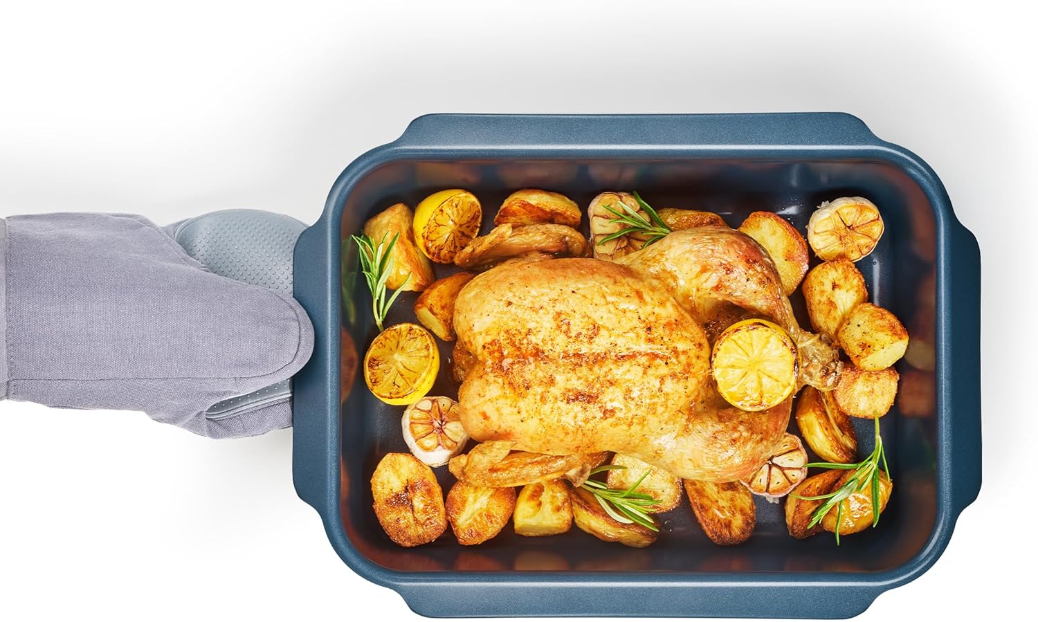 Easy-pull handles on all sides, designed for easier handling with oven gloves