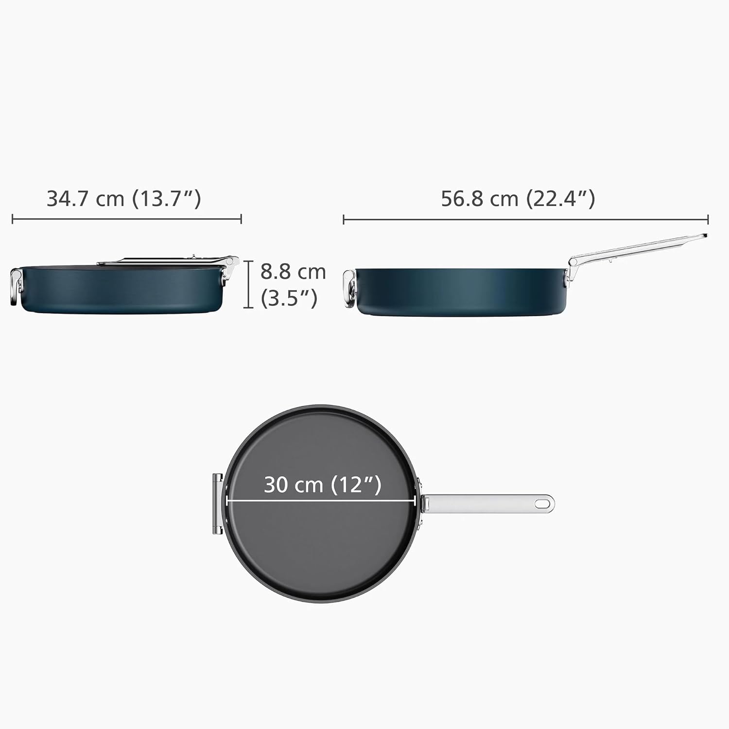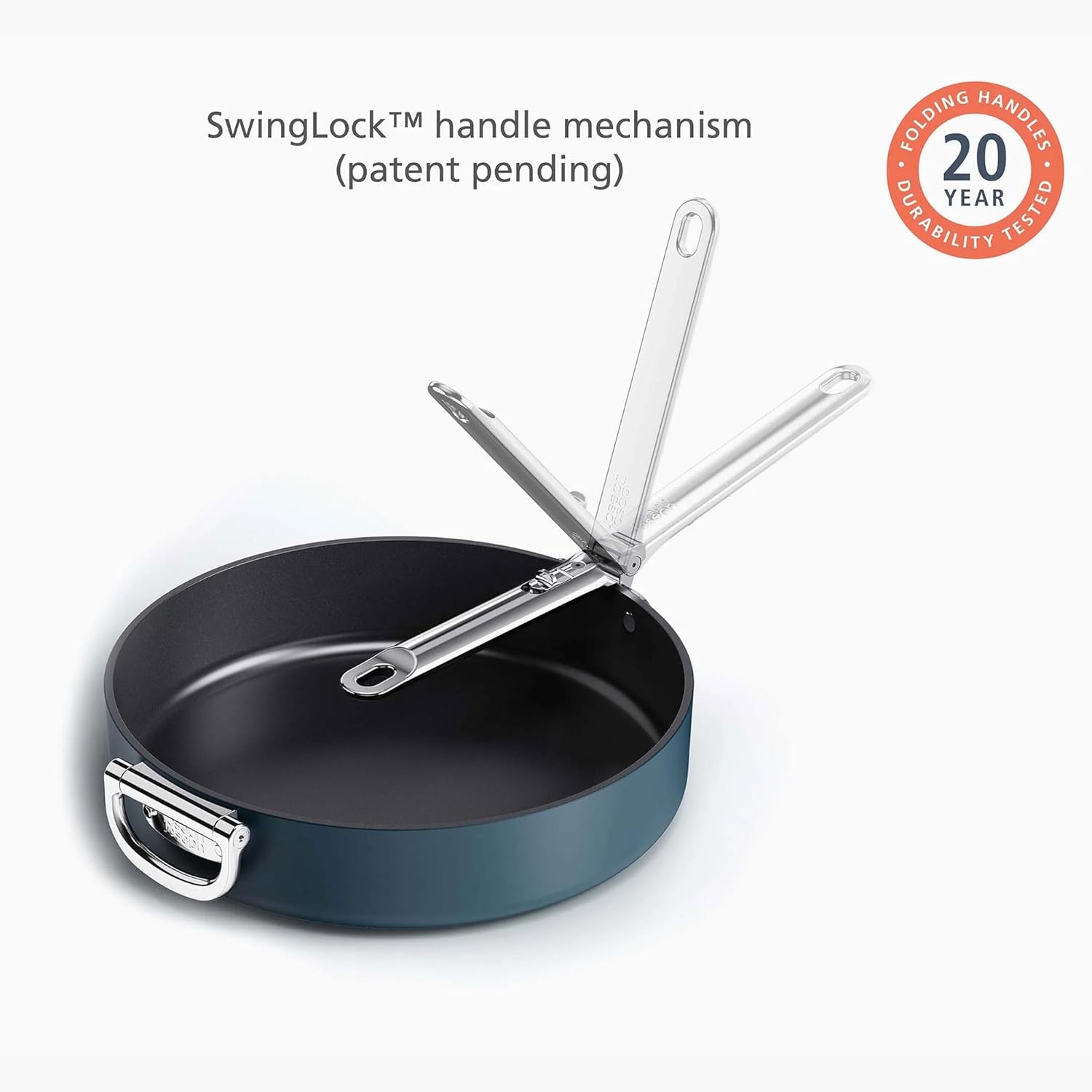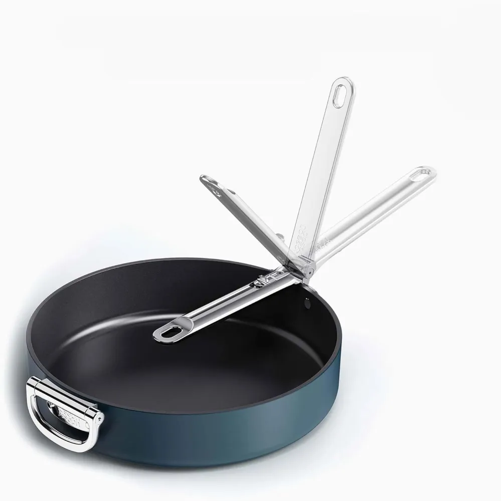 Folding stainless-steel handle saves up to 50% more space than a standard pan and 20-year lifetime tested