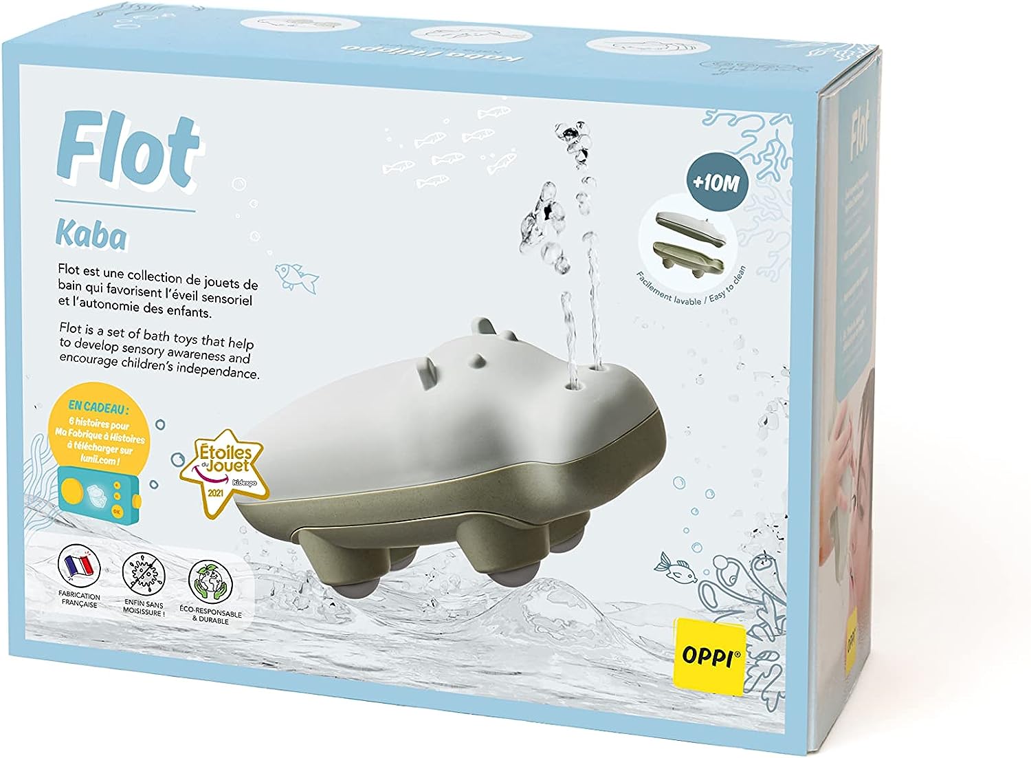 The bath games from OPPI are designed to engage children aged 10 months to 6 years, fostering their development, fine motor skills, and imagination. Kaba the hippopotamus from the Flot Collection serves as an educational toy, encouraging sensory awareness, autonomy, confidence, and hygiene understanding through play.
