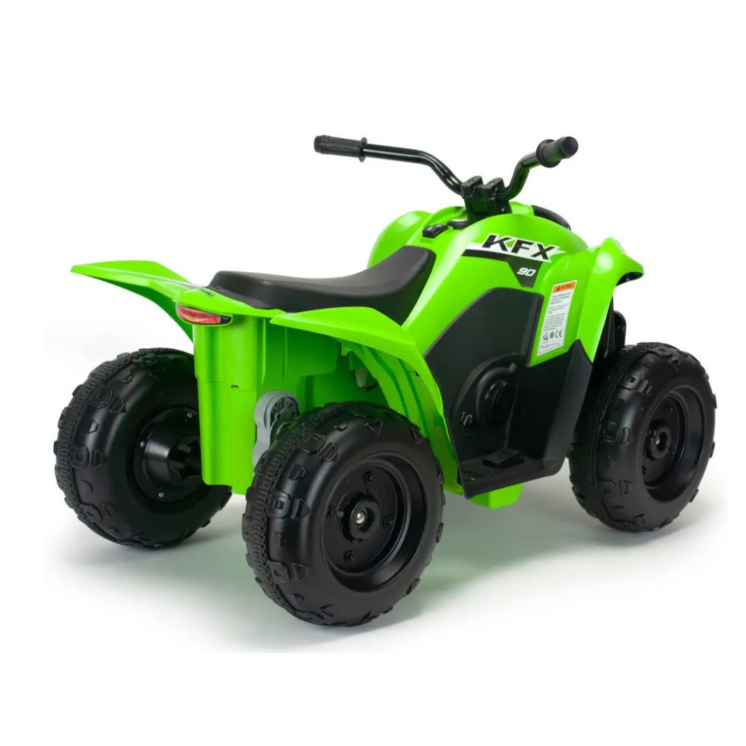 The Kawasaki KFX90 12V Green Electric Quad is an exciting ride-on vehicle designed for young adventurers, combining safety and fun for outdoor exploration.