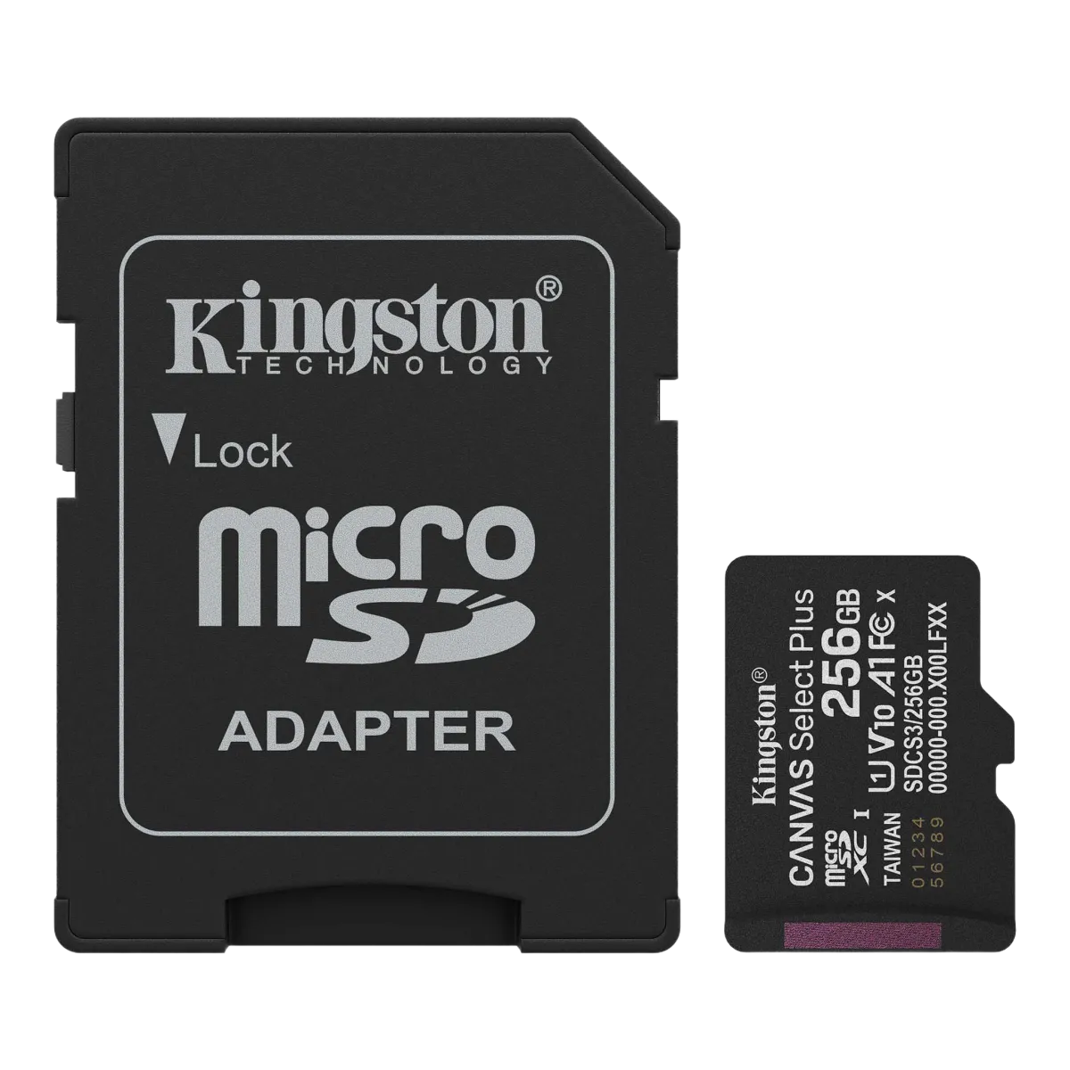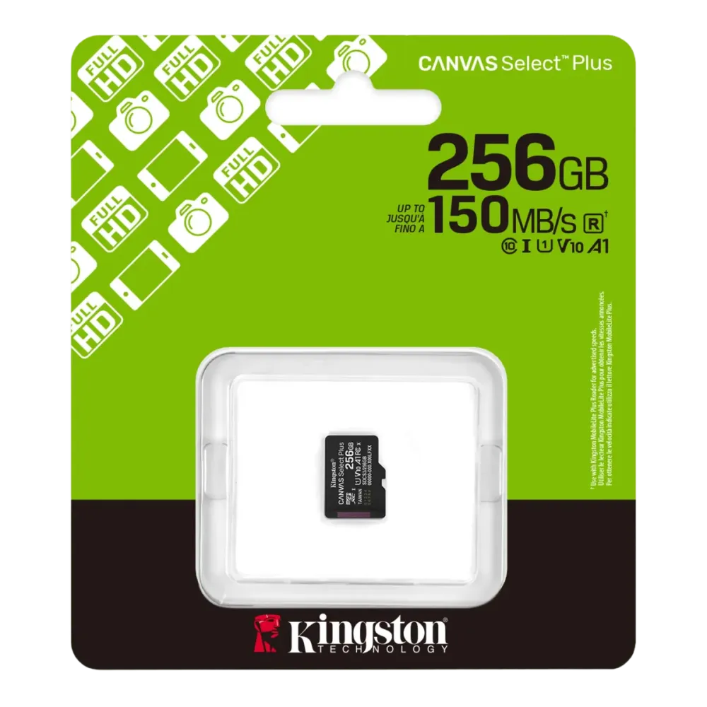 $NaNKingston (SDCS3/256GB) Canvas Select Plus microSDXC 256Gb - SD Adapter - Black- Capacity: 256Gb- Format: MicroSDXC- UHS Speed Class: U3- Video Speed Class: V30- Application Performance Class: A1- Read Speed: Up to 150 MB/s- File System: exFAT