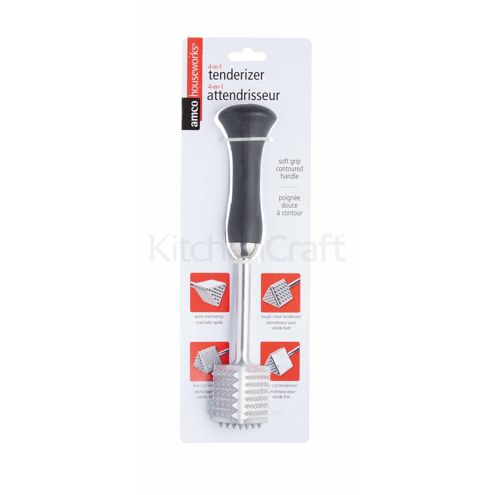 Equal parts meat tenderiser, mallet and marinator, this four-in-one tool from Amco Houseworks features everything you need to prepare your meat, fish and poultry for the perfect recipe! Like any good meat mallet, Amco’s version is made of robust metal and has a comfortable handle that makes the job easy on your hands. The ingenious addition is its four-sided head, which can tenderise tough and fine cuts of meat, as well as flatten fillets and even pierce meat to help flavoursome marinades soak in. This tool also comes with a 10-year guarantee.A great tenderiser for breaking down all types of meat fibres for more succulent results