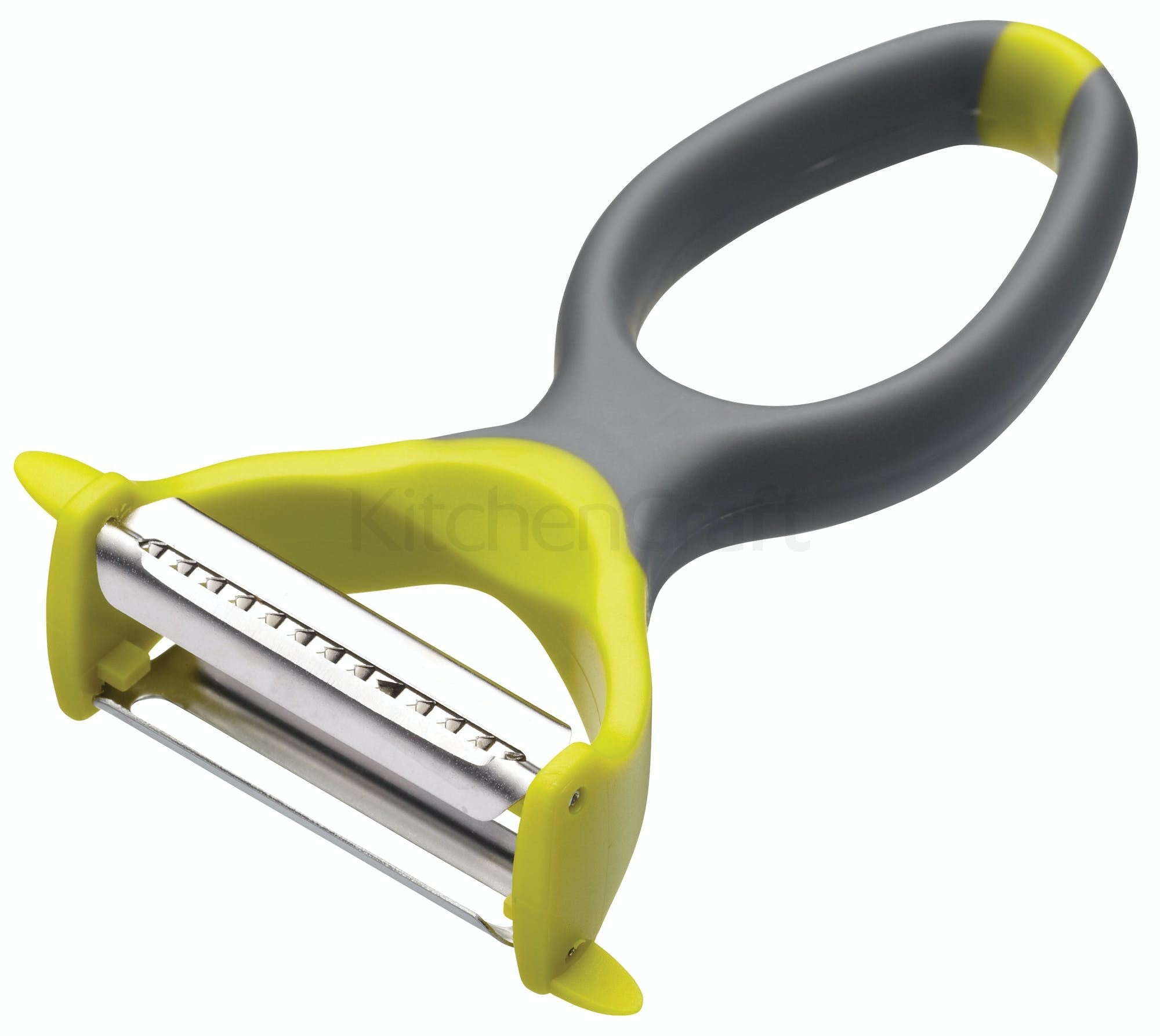 A great little kitchen gadget that features two swivelling stainless steel blades for peeling fruit and vegetables with ease and a serrated blade for creating julienne strips. With a soft touch ergonomic handle, this 2 in 1 'Y' shaped peeler is also extremely comfortable to use and comes with blade covers so you can keep it safely in your drawers. Available in the key Colourworks colours, the peelers can be co-ordinated with a range of other items in the Colourworks range, allowing you to mix, match and co-ordinate your kitchen in a striking array of colours. The counter top display includes twenty-four assorted coloured Colourworks 2 in 1 'Y' shaped peelers.Handwash only