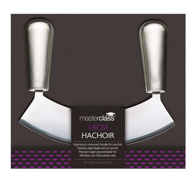 Rapidly slice and dice fresh herbs with the MasterClass Acero Stainless Steel Carbon Single-Blade Mezzaluna / Hachoir. With its strong curved blade and two sturdy handles, it rocks back and forth across your chopping board for faster and more effective food preparation! It’s great for chopping fresh herbs, whole spices, garlic, onions and much more. And because it dices so finely, it releases maximum flavour from your fresh ingredients. Taking its name from the Italian word for half-moon, this 18 cm (7") mezzaluna features a single blade made of heavy-duty stainless carbon steel. With its precision taper-ground edge, it delivers quick, clean cuts and stays sharp, even with regular use. With proper care, the knife will last for years. That’s why it comes with MasterClass’s 25-year guarantee.Dishwasher safe.Dimensions: 17.500 x 3.000 x 14.000cm