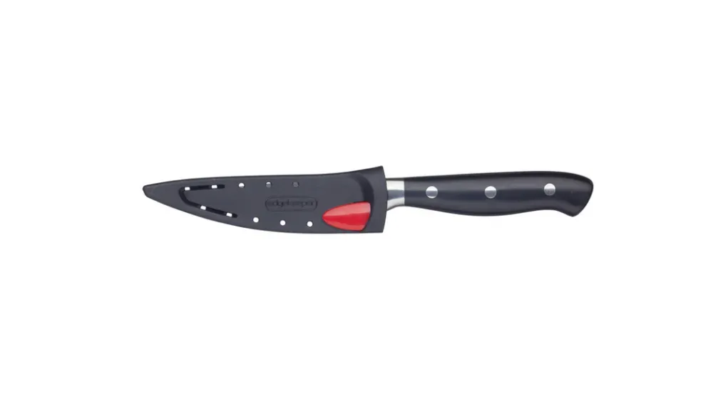 What if you could enjoy razor-sharp cutting performance, but without actually having to sharpen your knives? MasterClass's EdgeKeeper knives maintain themselves, so you don’t have to. Their innovative self-sharpening technology means your knives always cut with fresh-from-the-factory sharpness. And because they’re made of high-carbon stainless steel, they’ll retain their precision edge and are built to last for years. In fact, they’ll only get sharper the more you use them. Built to last, this knife is covered by MasterClass' 25-year guarantee.Sharpens with every use Forever sharp Triple riveted Safety sheath.Dimensions: 21.000 x 2.500 x 2.000cm Product Weight in KG: 0.080 Product Weight in KG (Including Packaging): 0.117 Colour: Black Material: Stainless Steel 25 year guarantee