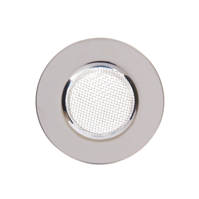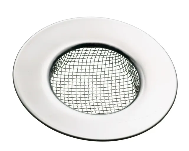 Kitchen Craft counter top display with forty-eight stainless steel sink strainers, all with a fine mesh gauze for capturing large particles, helping to prevent blocked pipes and drains.Dishwasher safe.Dimensions: 10.000 x 14.000 x 1.300cm