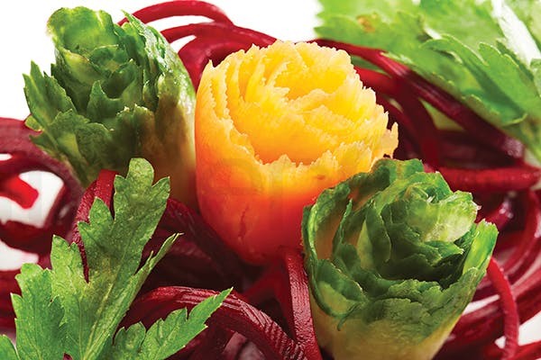 An Incredibly Useful Kitchen Tool! Slice, Twirl, Crinkle And Cut In One Easy Step, This Three-in-one Garnish Maker Is Ideal For Use With Carrots And Cucumber To Create The Perfect Garnished Salad.Dishwasher Safe.Size: 16Cm