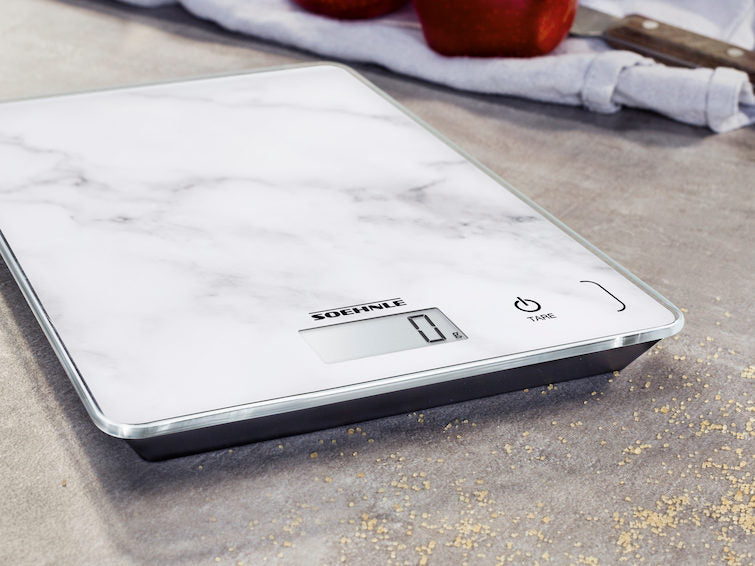 The anti-slip feet ensure the Page Compact 300 Marble digital kitchen scale remains still on the work surface whilst in use.