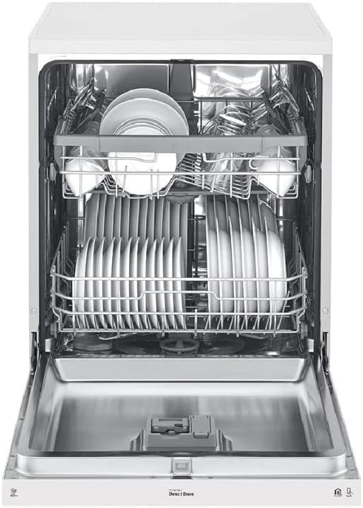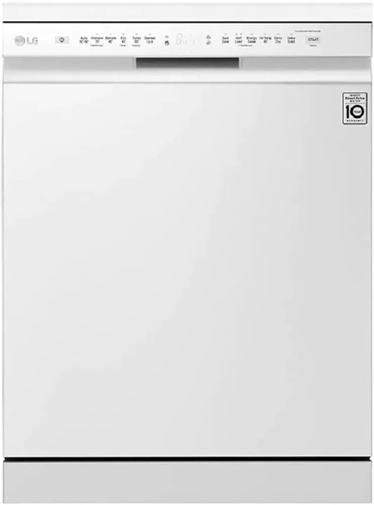 QuadWash™ (Multi-Motion Wash Arms) Inverter Direct Drive with 10 Years Warranty EasyRack™ Plus SmartThinQ™ LG 8 Programs 14 Place Settings Free Standing Dishwasher, Platinum Color White Model - DFB512FW (International Version). The multi-directionally rotating arms shoot water streams in various angles that reach every corner of the dishwasher. Thanks to Multi-Motion spray arms and high-pressure jets, QuadWash provides maximum coverage to get things clean the first time. Easy to adjust on-the-fly, this racking system can shift to handle any challenge your dishes serve up. With four spray arms instead of two, QuadWash provides stronger cleaning performance to clean every dish on every rack. LG’s Inverter Direct Drive Motor was designed with quiet in mind. With fewer moving parts, you get reliable performance from one of the quietest dishwashers in its class. Adjust the height of the upper rack to three different levels to load taller items. Load the dishes your way, whether it’s a pan on the top rack or a bowl on the bottom. Gently clean your delicate dishes while power-washing heavy-duty pots and pans with Dual Zone Wash. Choose the Turbo Cycle to clean hard soiled dishes in just less than an hour. Customized features allow for enhanced cleaning and drying performance while helping your life in the kitchen become much easier. Compared to conventional motors, LG’s innovative Inverter Direct Drive Motor helps increase energy efficiency. Smart Diagnosis helps solve problems quickly and efficiently through your smartphone, with suggestions for easy solutions and next steps. Keep your dishwasher fresh by activating the Machine Clean Reminder. After every 30 cycles the lighted indicator will let you know it’s time to run the cleaning cycle. With the LG SmartThinQ smartphone app, download new wash cycles to meet your needs-such as Pots & Pans, Casseroles, Glassware and Night Care. Tub temperature reaches up to 80°C during the rinse cycle, which enables ultimate hygienic care of dishes. Durable and easy to maintain with elegant and aesthetically pleasing look. The elegant exteriors of LG dishwashers can complement the design of any kitchen. LG dishwasher bring a sleek, modern design to your kitchen. Built with innovative LG technology, your dishwasher will work as beautifully as it looks. Product Dimensions ( L x W x H ) 60 x 60 x 85 cm 45Kg.