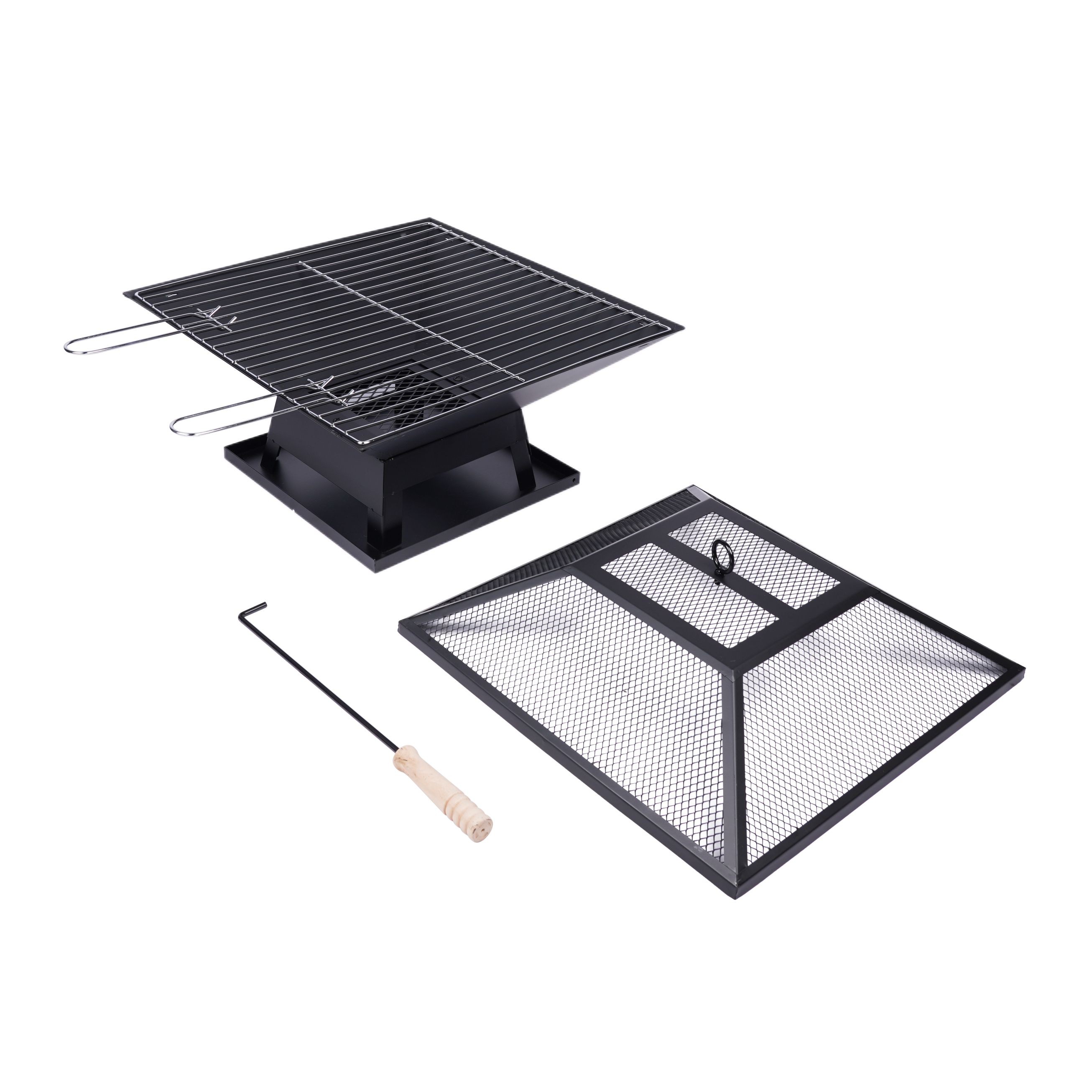 Introduce Style And Convenience To Your Outdoor Space With The Steel Firepit. Its Stylish Design Is Manufactured From A Durable And Hard-wearing Steel . As The Flames Crackle The 360° View Can Be Enjoyed By Everyone, And The Cooking Grill Can Be Popped On Top To Cook Up A Storm With The Help Of The Safety Tool. This Firepit Is Complete With An Optional Mesh Lid Which Can Be Placed On Top To Prevent The Spread Of Sparks And Ash.Includes Mesh Lid, & Safety Tool