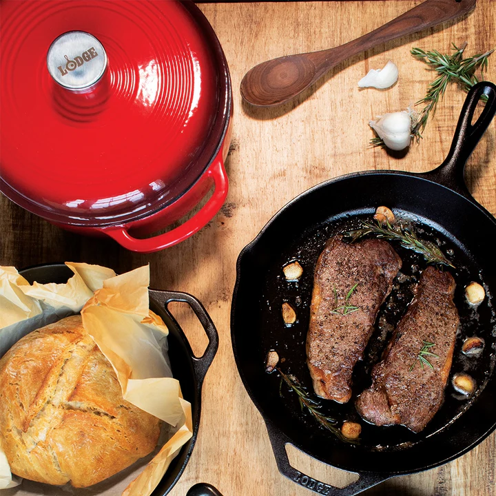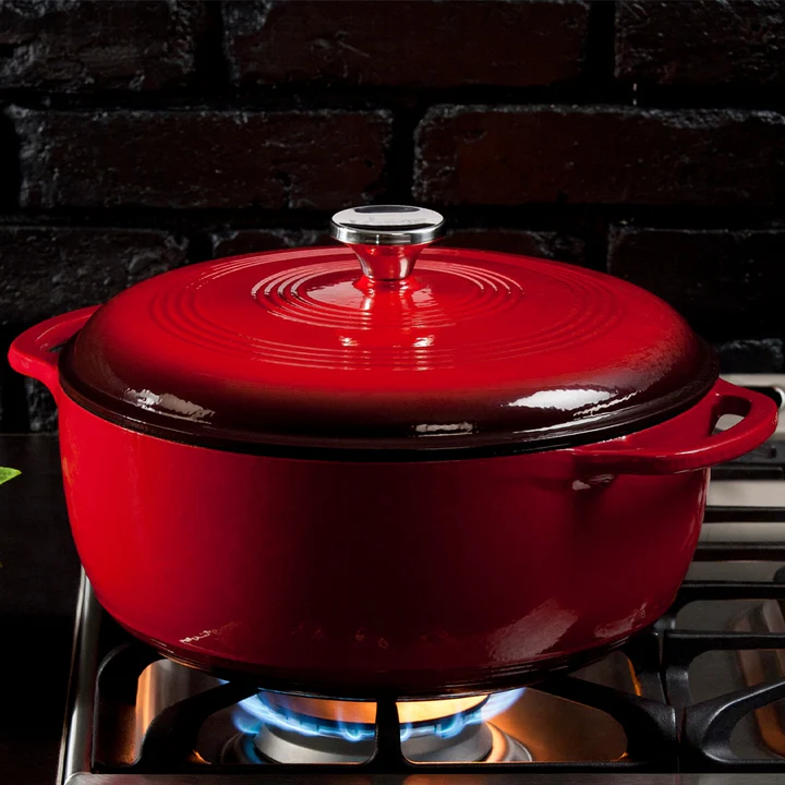 Do you love to entertain? This 7.38 Lt Enameled Dutch Oven offers a classic way to both prepare and serve memorable meals that will impress and comfort your guests. This vibrant Dutch oven has black matte enamel rims, its cooking surface is beige enamel, and the smooth glass surface won't react to ingredients. Use it to broil, braise, bake, or roast in the oven up to 260° C, and sauté, simmer, or fry on any stovetop, as well as to marinate and refrigerate food.Stainless steel knob and loop handles for great control- Smooth glass surface won't react to ingredients- Unparalleled heat retention and even heating- Use to marinate, refrigerate, cook, and serve- Great for induction cooktops.Dimensions