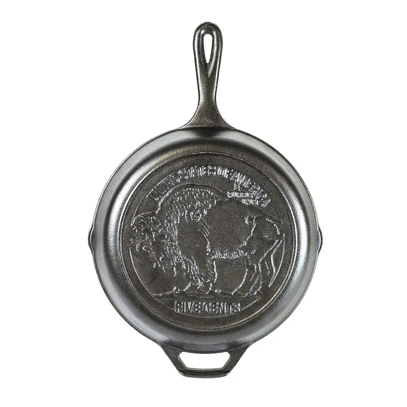 Celebrate a piece of American history—with a functional and collectible Buffalo Nickel skillet. Cast iron provides great heat retention and the naturally seasoned cooking surface is ready to go, straight from the foundry, so you start cooking right away.