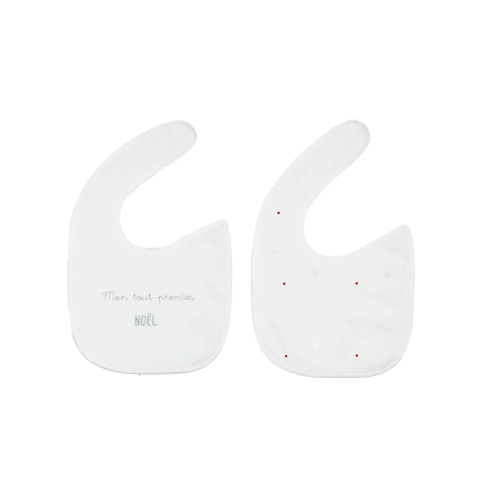Fall in love with baby's first Christmas and give them a memento with this set of 2 newborn bibs featuring Christmas motifs.