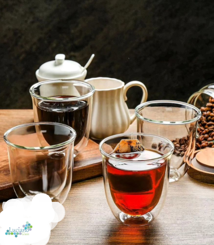Luciano 280ml High Borosilicate / Double Wall / Isotherm Cawa Shape / Glass Cups Set -2 pieces Set Long Cawa Shape suitable for water / drinks and Coffee -Transparent Glass Cups -Brand: Luciano -Heat Resistant: can go up to 250 degree Celsius -Double Wall: the internal temperature of glass content doesn't reflect on the exterior -Can go into microwave, or oven, and also fridge -Isotherm: the temperature inside (warm or cold) is kept for a long period -Elegant Design and Feel -Light and luxurious Hold -Combination of 2 280ml cups in One Color Box -Hand Made / Blown Glass Luciano High Borosilicate Double Wall Glass Items are made in China in Luciano Glass Factories, and they are tested for safety and food security.