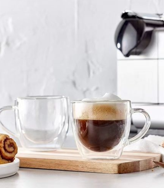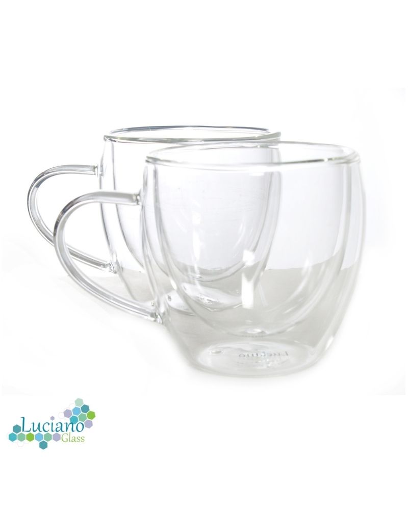 Luciano 300ml High Borosilicate / Isotherm / Double Wall Zicco Glass with Handles 2PC Cup in Gift Box -Transparent Handles -Brand: Luciano -Heat Resistant: can go up to 250 degree Celsius -Double Wall: the internal temperature of glass content doesn't reflect on the exterior -Can go into microwave, or oven, and also fridge -Isotherm: the temperature inside (warm or cold) is kept for a long period -Elegant Design and Feel -Light and luxurious Hold -Combination of 2 300ml cups with handle in One Color Box -Hand Made / Blown Glass Luciano High Borosilicate Double Wall Glass Items are made in China in Luciano Glass Factories, and they are tested for safety and food security.