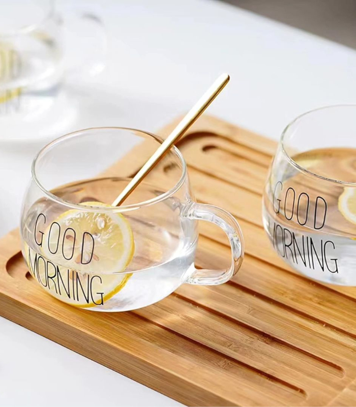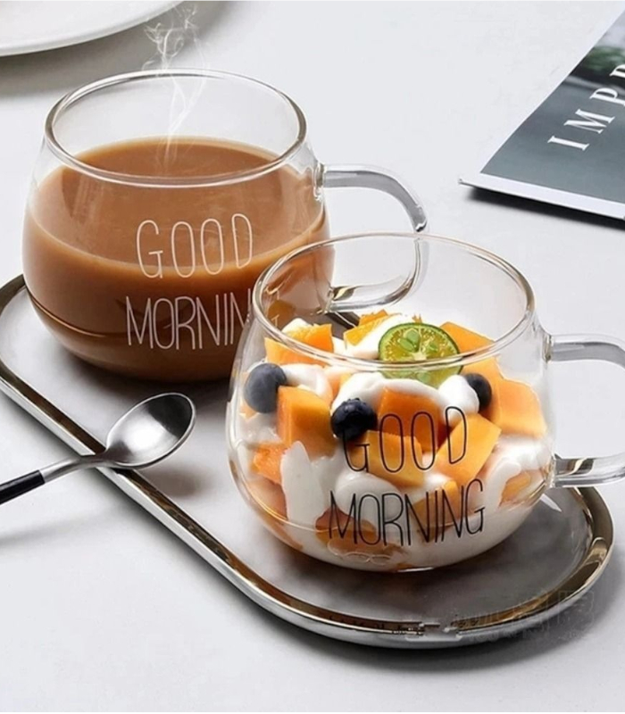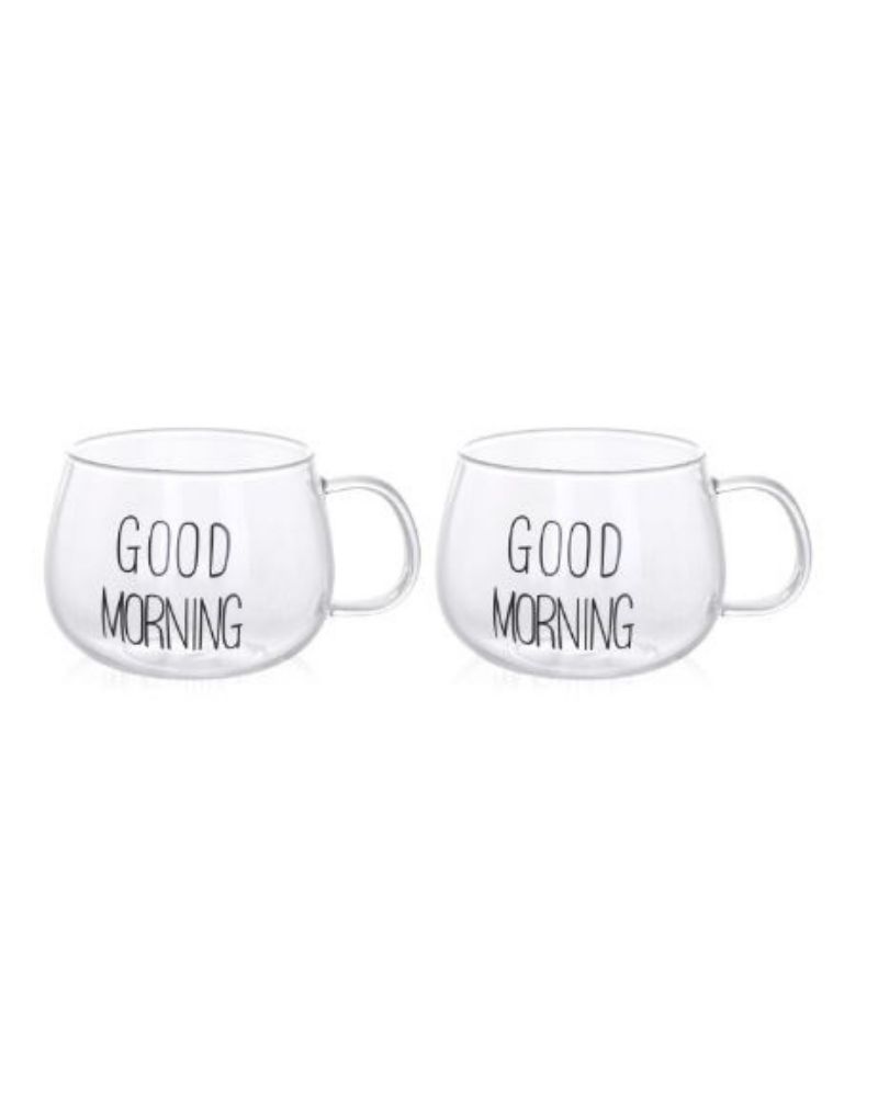 Luciano High Borosilicate Single Wall Good Morning Glass Mug Set This set of Hand Made Isotherm Single Wall Glass Cups is composed of 2 350ml Good Morning Cups. They come in a gift box and are not only elegant, but they also light and when you use them once, you feel like you cannot use normal glass anymore. High Borosilicate Glass is elegant on use and lighter than any other type of glass or cristal, and this is why it is becoming more and more popular and replacing soda lime glass items. This set of Good Morning Single Wall Glass Mugs is a perfect gift and looks so elegant when presenting cocktails or coffee or tea service. Luciano High Borosilicate Single Wall Glass Items are made in China in Luciano Glass Factories, and they are tested for safety and food security.