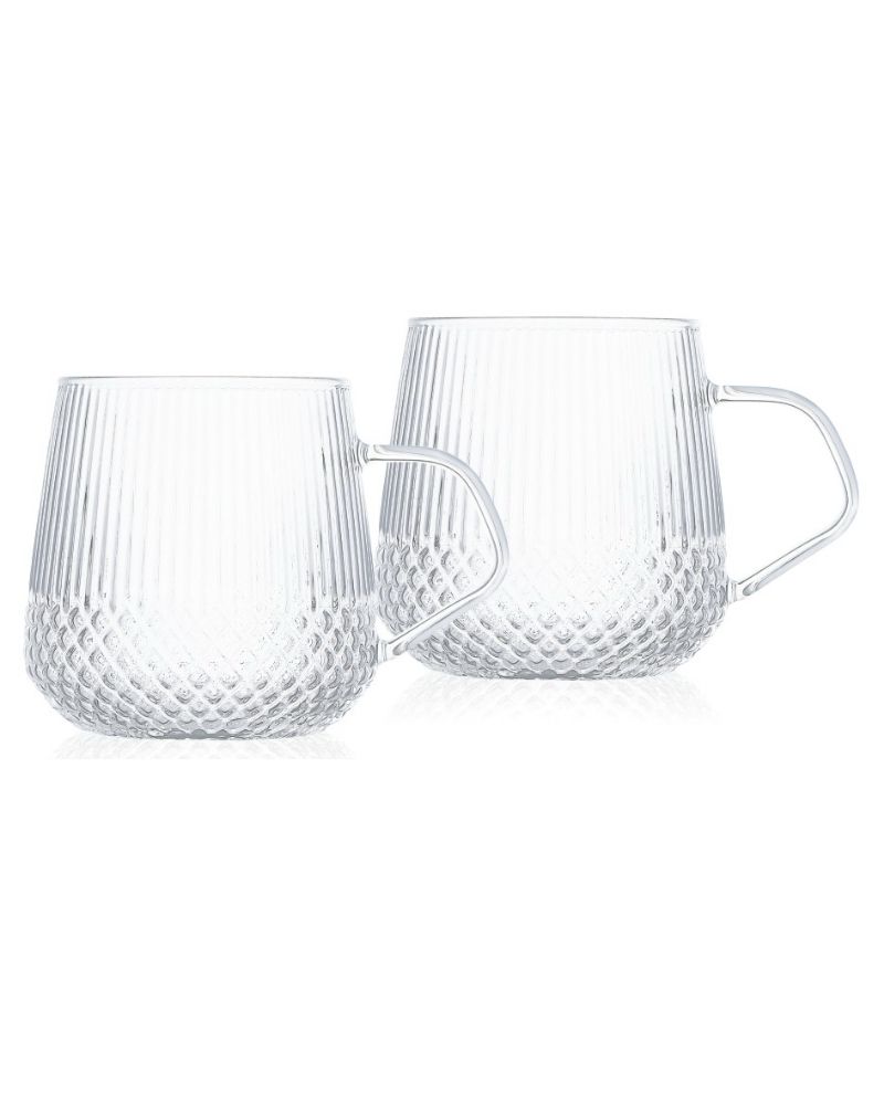 Luciano Borosilicate 400Ml Single Wall Glass Cups 2Pcs Set -2PC Set -Transparent Handles -Single Wall Mugs Baltic Design -Gift Box