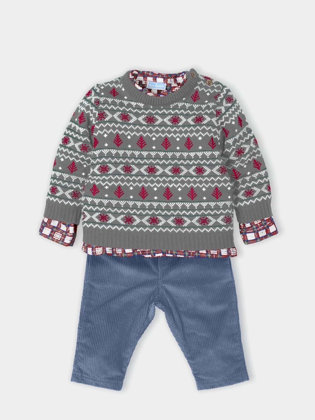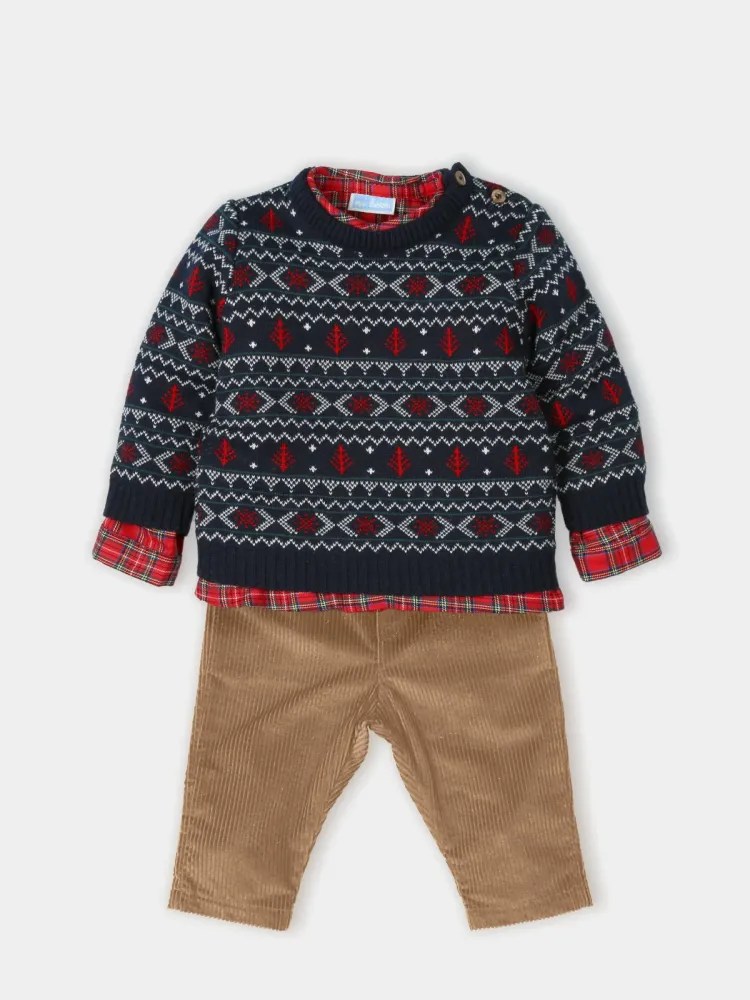 Get the full look with this 3 pieces Christmas set._x000D_\n_x000D_\nA matching shirt & knit with velour pants is all what you need for a magical Christmas.