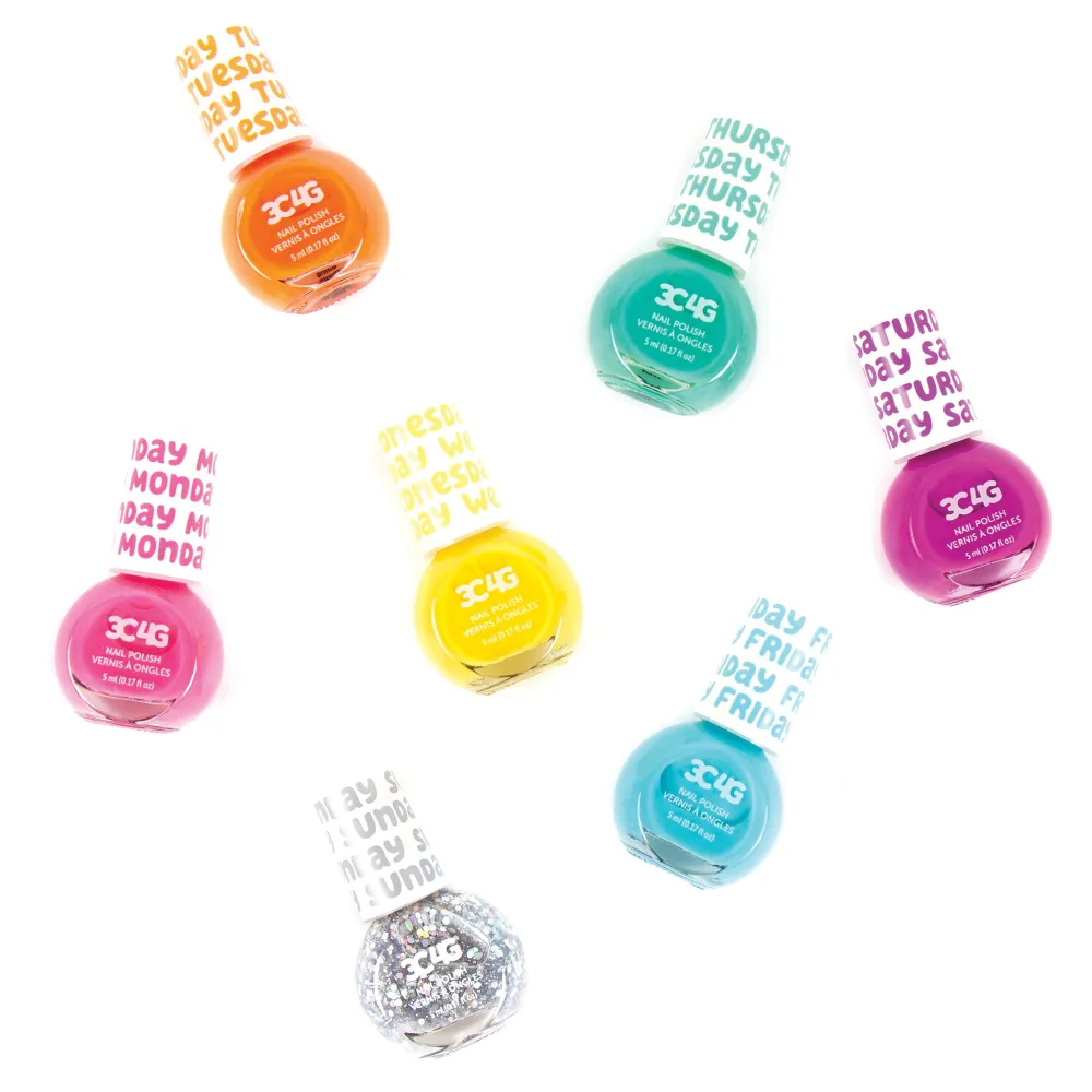 Get a colorful manicure with this 3C4G Rainbow Bright Nail Polish set! With one of the rainbow's seven vivid hues assigned to each day of the week, this charming and eye-catching gift is sure to make any tween smile. Seven nail polish colors are included in the set to create a range of fashionable looks. Features of the Product: • secure for children. • Seven incredibly fashionable colors to fit the tastes of any fashionista. • A distinct hue designated for every day of the week. • non-toxic formula made of water.