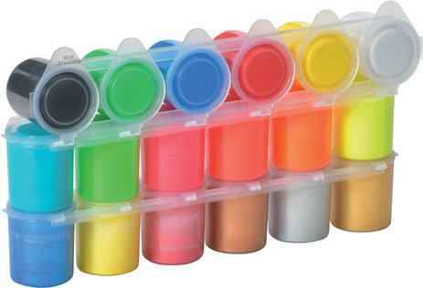 Mallette transparente r?�utilisable contenant 18 pots de 25 ml de peinture gouache. Peinture gouache pr??te ?� l'emploi, de premi?�re qualit?�, en mallette pratique avec 6 couleurs fluos, 6 couleurs m?�tallis?�es et 6 couleurs classiques. Le set permet de conna?�tre et d'exp?�rimenter 3 diff?�rentes familles de couleur ou tones qui ensemble se compl?�tent et se subliment. En respectant les diff?�rentes caract?�ristiques d'usage, les couleurs peuvent ??tre utilis?�es sur diff?�rentes surfaces : papier, papier cartonn?�, bois, textile, verre, m?�tal, plastique et terre cuite. Elle peut ??tre fix?�e avec un vernis ou un fixateur de couleur appropri?� (non fournis). Gouache lavable en machine. Nettoyer les taches sur textiles en suivant les instructions. D?�veloppe la cr?�ativit?� de l'enfant. Pratique tout se range et se transporte dans la mallette. Fabriqu?� en Italie. Dimensions : de la mallette 23 x 18 x 5.5 cm.