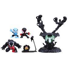 Marvel Stunt Squad Villain Knockdown Playset offers gamified action figure sets for kids aged 4 and up. In this classic hero versus villain play pattern, the playset includes two 1.5-inch Marvel super hero action figures, a deluxe larger scale villain action figure, a launcher, and a destructible target base. Kids can engage in crash and bash fun by placing the Marvel Stunt Squad super hero action figure on the launcher, aiming at the target, and launching the toy into action. The playset encourages imaginative play, and each figure and playset is compatible with others in the Marvel Stunt Squad collection. Each playset is sold separately, subject to availability.