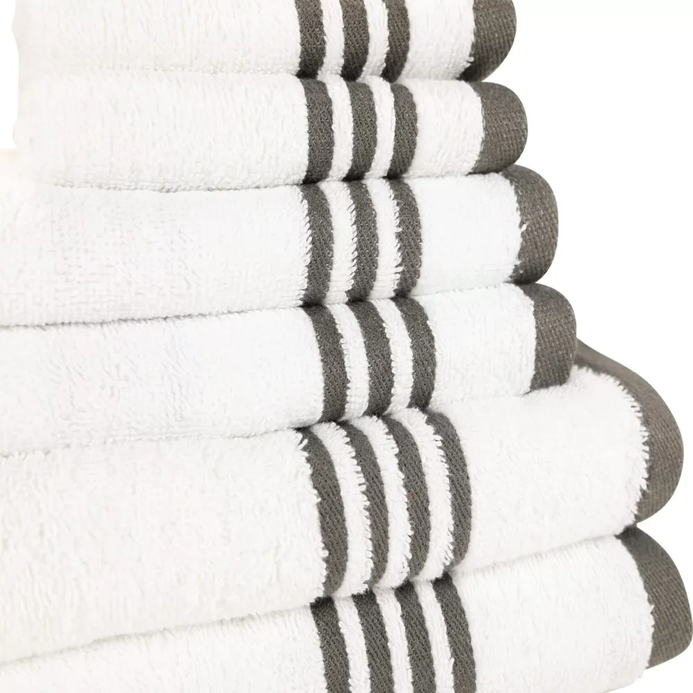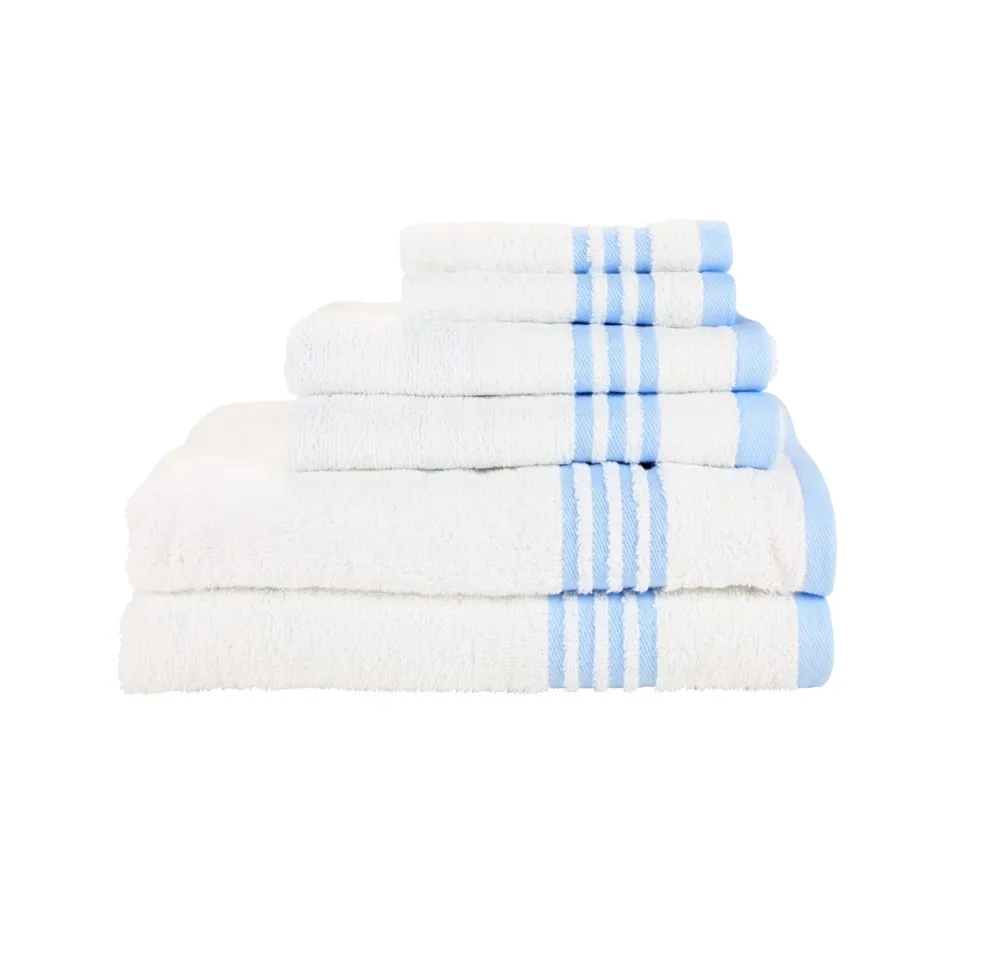 Metro Soft towels are soft white towels with contemporary stripped borders, which brings a pop of color to a white towel. The stripped colors include blue, green, aqua, linen, light grey, and dark grey.