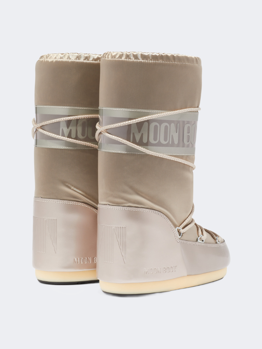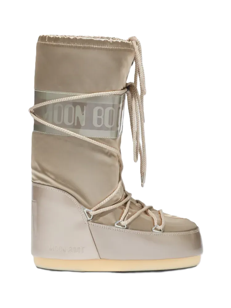 The glossy satin Moon Boot Icon Glance channels the glamour of high-tech astronaut gear with a nod to the 1969 lunar landing.