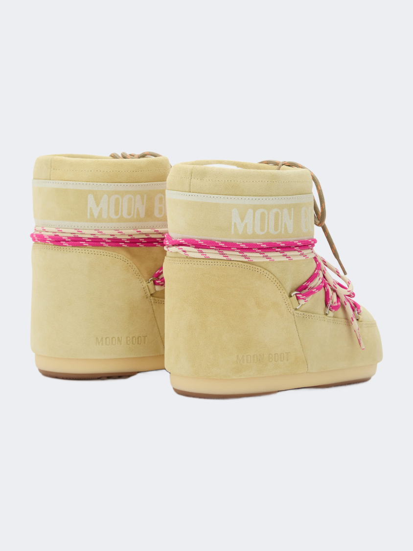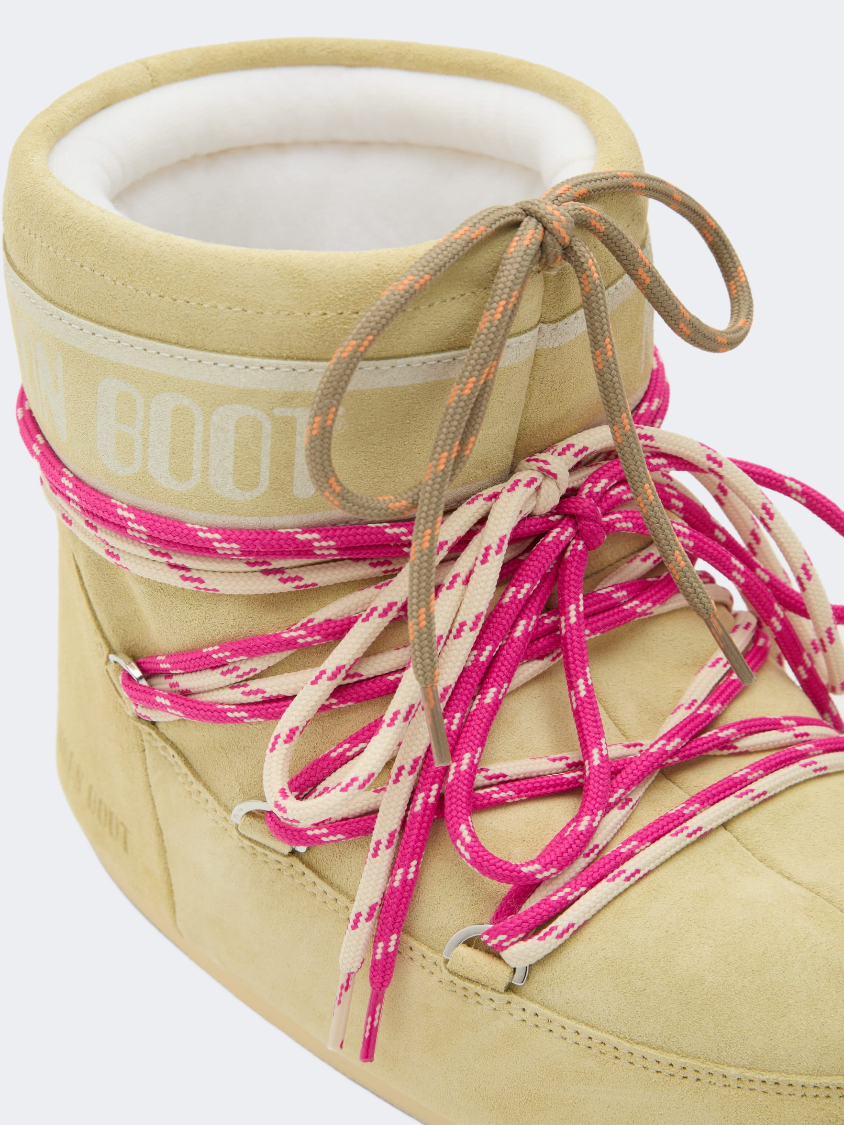 The Moon Boot Icon Low combines retro roots with modern comfort, crafted from rich, tactile suede in a vibrant light yellow.