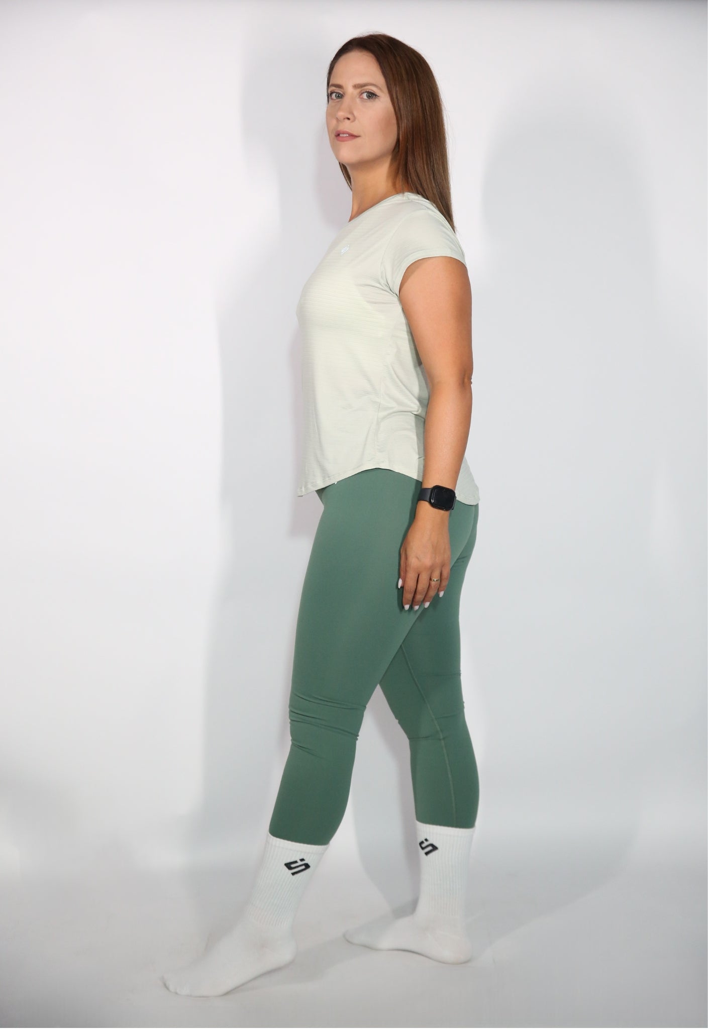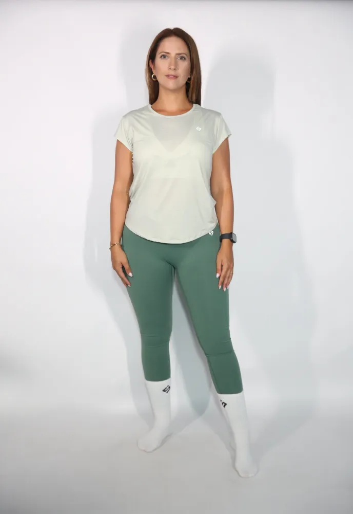 Our MotionFlex Performance Leggings offer ultimate flexibility and elegance. With exceptional stretch and support, the innovative cross waistband ensures a secure fit that enhances your silhouette. From yoga to workout sessions, these versatile leggings are your perfect legging companion. • 30 is the maximum washing temperature • Do not Bleach • Do not Tumble Dry • Do not iron • 76% nylon, 24% spandex • Seamless • V-shape waistband design • Sweat-wicking • Squat-proof