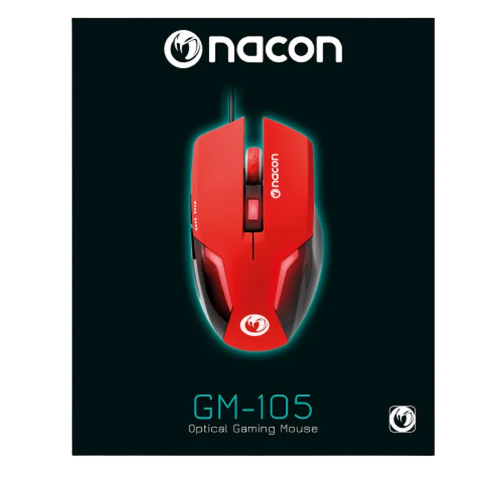 Nacon (PCGM-105RED) GM-105 Optical Gaming Mouse - Red on Black- 6x Buttons (1x Dpi Selector) - 2400Dpi Optical Sensor - Soft touch surface - Illuminated design elements - 1.5m USB Cable