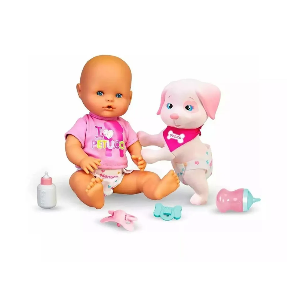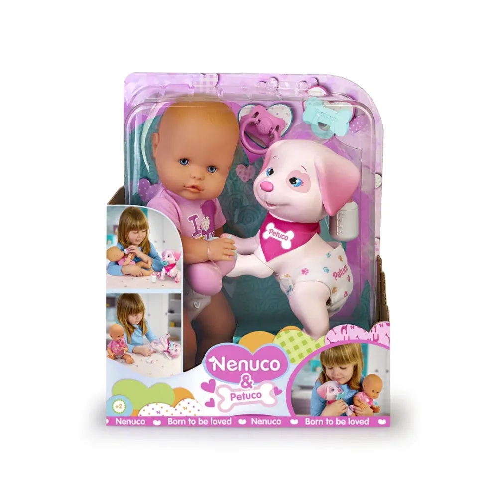 Meet Nenuco & Petuco, a 35 cm Nenuco doll with a soft body and her adorable puppy companion, Petuco!