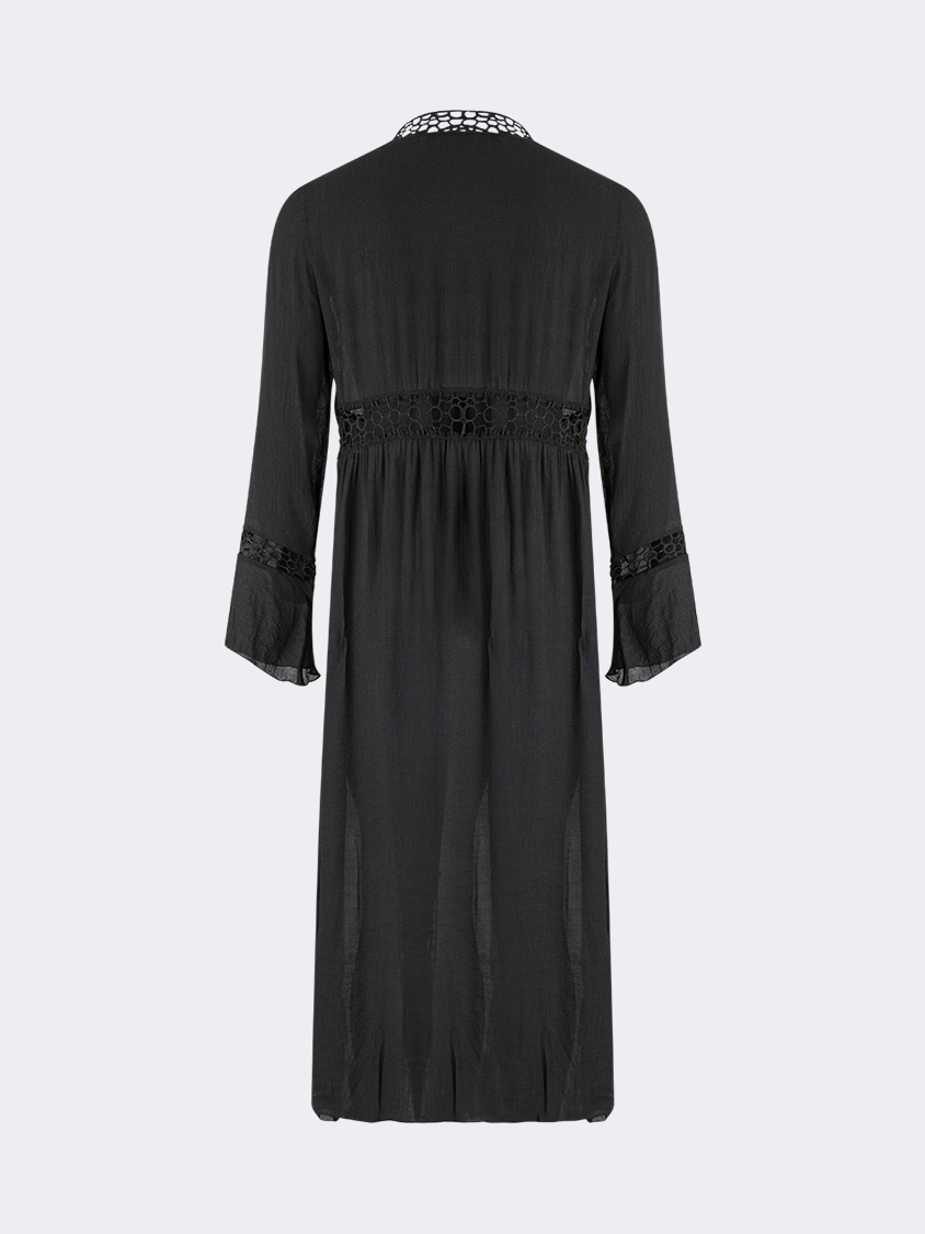 Intricate embroidery along hem and cuffs for a refined, bohemian touch