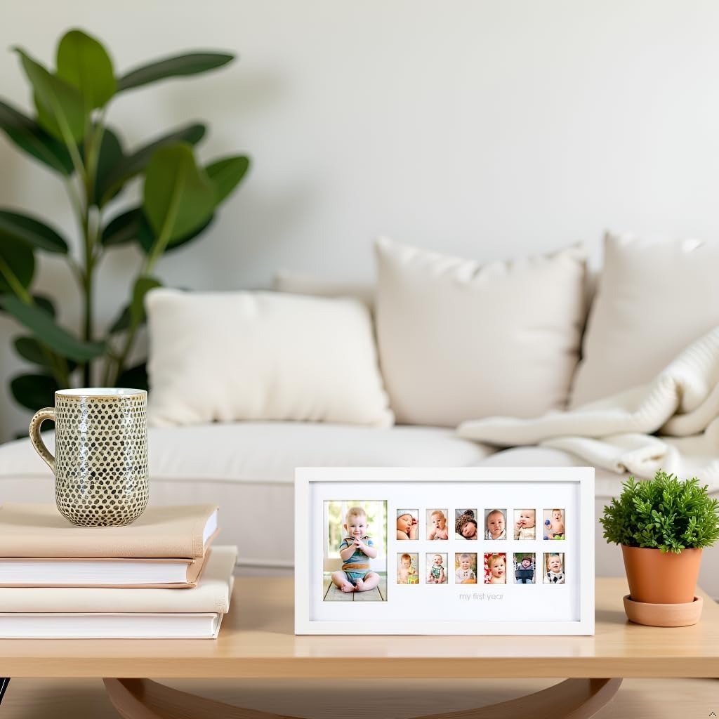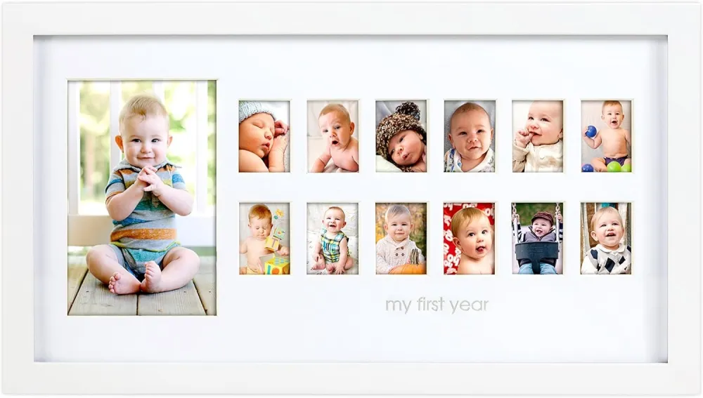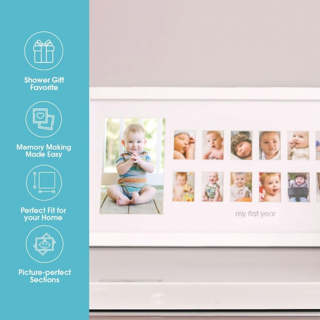 Cherish Every Month: Watch your little one grow month by month with Pearhead’s My First Year Photo Moments frame. This adorable frame lets you document and display your baby’s monthly growth, capturing each precious moment in a stylish, gender-neutral design.