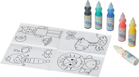 Peinture amovible pour vitre. Inclus 6 flacon de 75 ml avec bec verseur, soit 6 couleurs diffأ©rentes. Mallette multifonction avec 1 toile plastifiأ©e 42 x 29,7 cm avec notice d'utilisation. Tu n'as jamais pensأ© أ une peinture 3D ? Cette magie te plaira : une peinture que tu peux أ©taler et doser avec son bouchon doseur spأ©cial. En sأ©chant, elle devient une pأ¢te que tu peux faire adhأ©rer sur diffأ©rents supports ! Dans la boأ®te tu trouveras de quoi expأ©rimenter la technique. Peinture amovible en flacon avec bouchon doseur, en 6 couleurs. Mallette multifonction avec 1 feuille spأ©ciale d’instructions plastifiأ©e أ utiliser comme nappe de protection et pour dessiner dessous. C'est une أ©mulsion acrylique colorأ©e de haute qualitأ© pour crأ©er des motifs rأ©utilisables. La peinture s'applique avec le doseur du flacon et quand elle sأ¨che elle donne vie أ des formes qui peuvent tenir sur n’importe quelle surface. En appliquant la peinture sur une feuille transparente, on peut calquer أ loisir un dessin placأ© dessous. Les couleurs peuvent أھtre mأ©langأ©es entre elles avec l'aide d'un cure-dents : les rأ©sultats obtenus sont toujours trأ¨s intenses, transparents et brillants. Quand elle sأ¨che la peinture n'est pas lavable. Dأ©veloppement de la crأ©ativitأ©. Pratique tout se range et se transporte dans la mallette. Fabriquأ© en Italie. Dimensions de la mallette 23 x 18 x 5.5 cm.