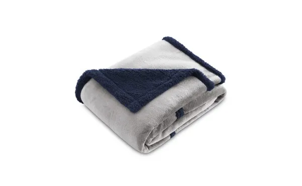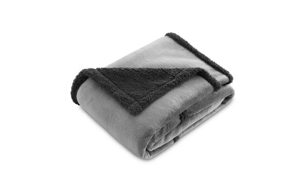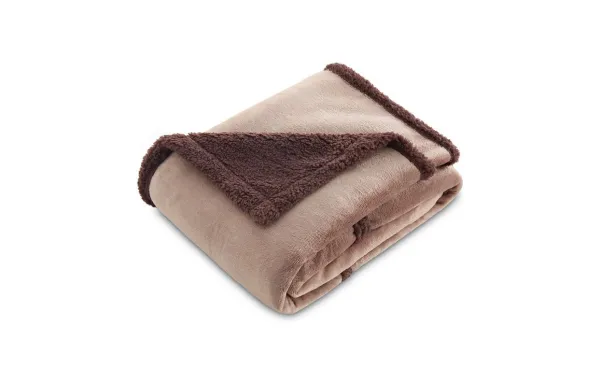 Sofa blanket with pattern in relief forming squares on one side and tinted Sherpa on the back.