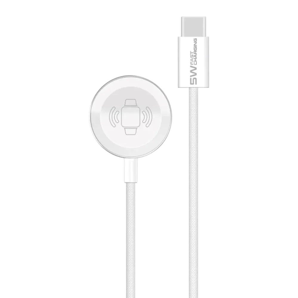 $NaNPromate ( WatchLink-C ) Charging Cable for Apple Watch Super Fast Fabric Braider - Long Bend - White
