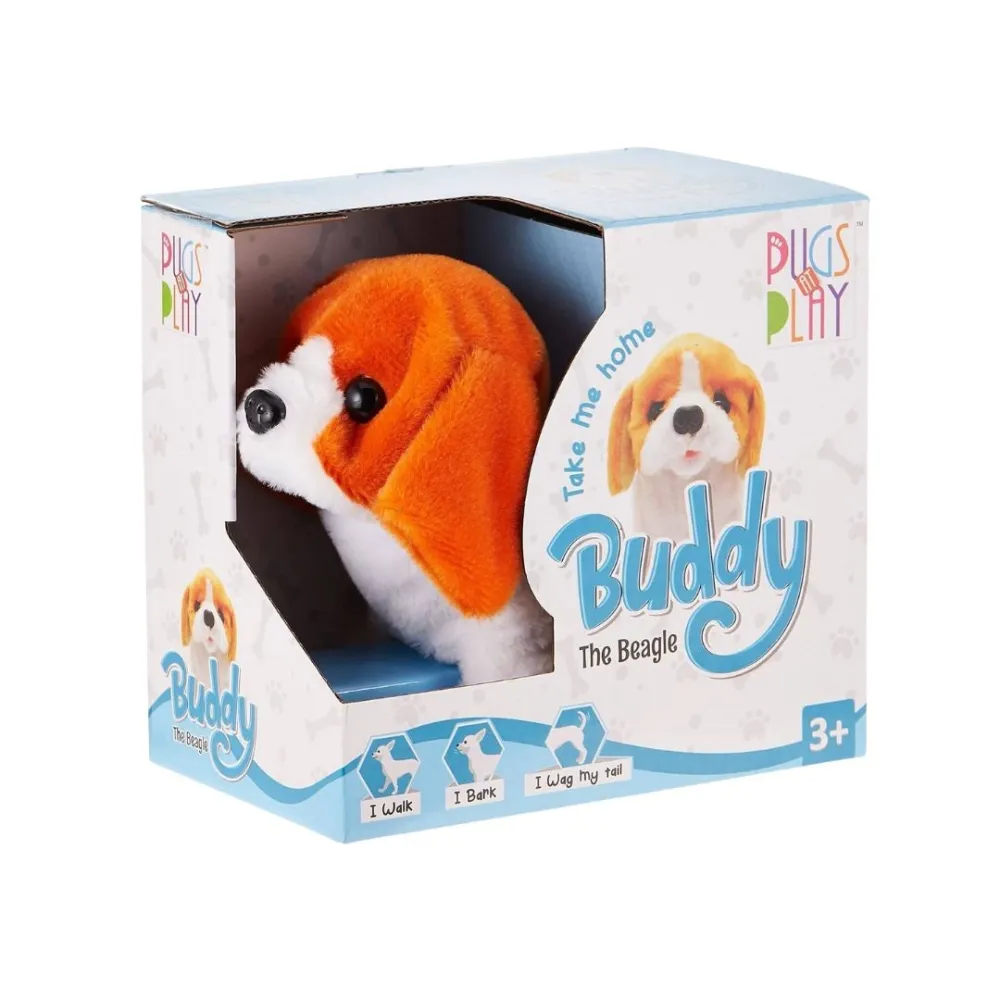The Pugs At Play Buddy Walking Dog Plush Toy is an interactive toy designed for children that simulates real pet behavior.