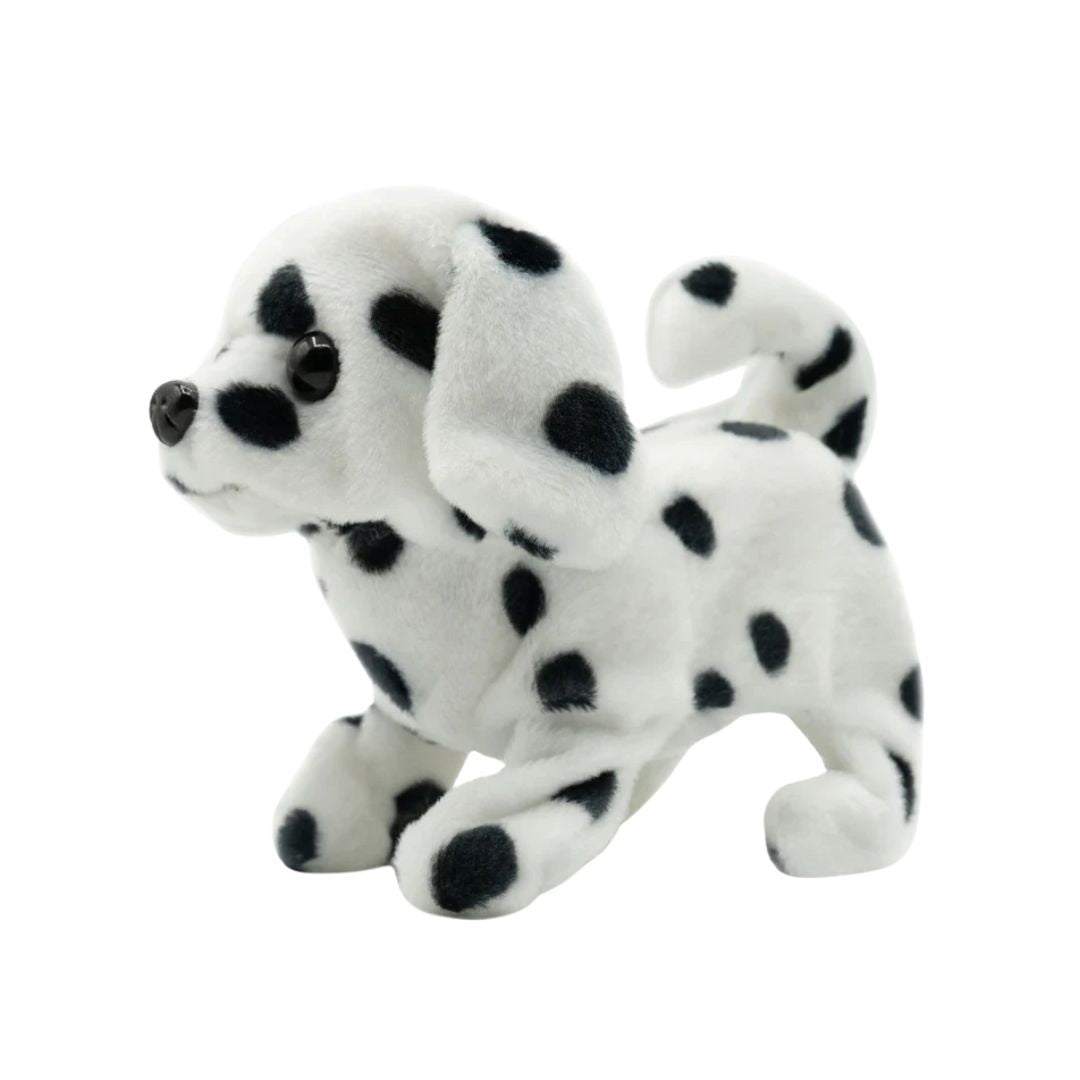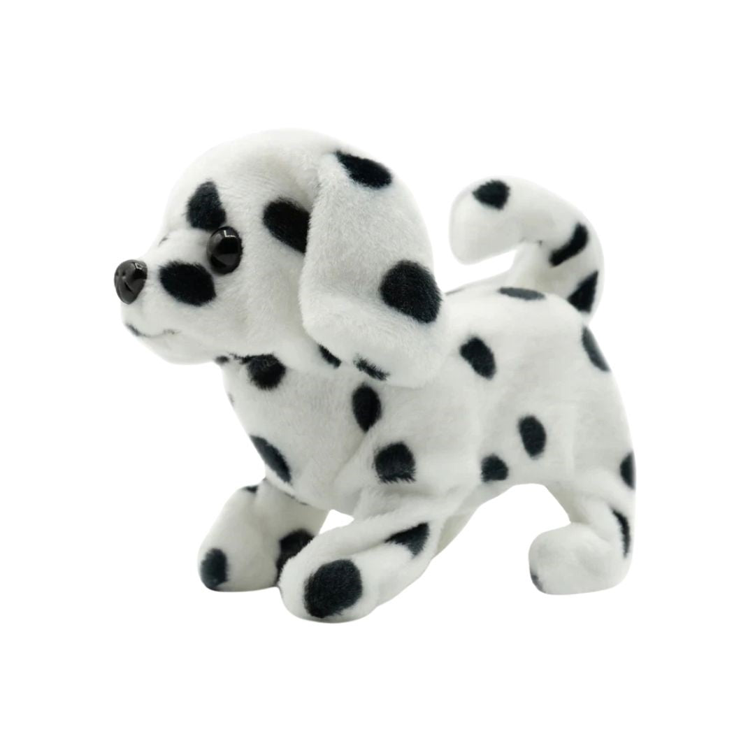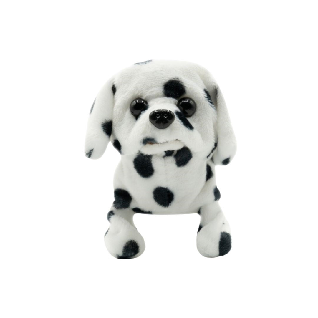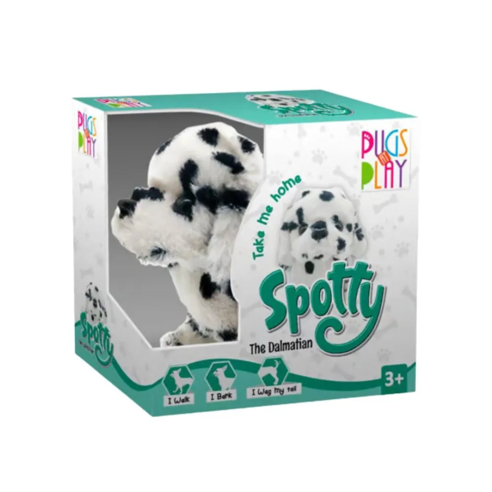 The Pugs at Play Spotty the Dalmatian is an interactive toy dog designed for children, offering a cuddly and engaging play experience.