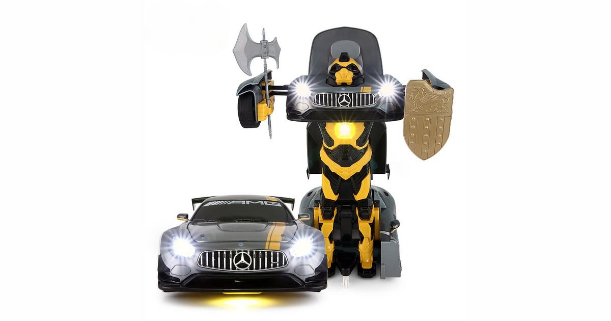 This transformer car has two sets of dimensions: before transformation, it measures 3414.69.4 CM, and after transformation, it measures 2024.631.8 CM. It features forward and backward movement, the ability to turn left and right, and comes with sound and light effects. The product includes batteries and accumulators with a charger. Please note that the availability and prices of products may vary between online and physical stores. Colors may also vary slightly from the image shown. If you have more specific questions, feel free to contact us. Thank you for your understanding.