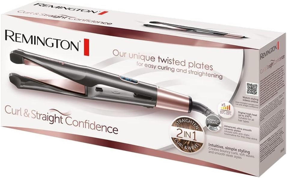 2-in-1 curl & straight, curved styling plates for straightening, curling & waves (digital display + 5 temperature settings 150-230 °) straightening iron & curling iron , Digital display with five temperature settings from 150-230 °C, 30 seconds heating time, temperature boost function allows quick adjustment of the maximum temperature,Memory function, remembers the last set temperature