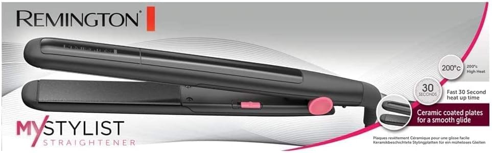 Slim, 110 mm long and spring-loaded styling plates for even pressure on the hair Ceramic coated styling plates for effortless glide Temperature setting of 200 °C, 30 seconds heating time LED readiness indicator, automatic safety shut-off after 60 minutes Transport lock, cable swivel joint