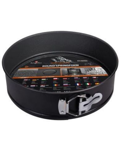 Round springform, 24 cm 3 layer marble coating Dishwasher safe - easy to clean! Oven safe: +220°c ECO friendly PFOA, LEAD, Cadmium free Material: Carbon steel round springform Size. 24X6,8cm