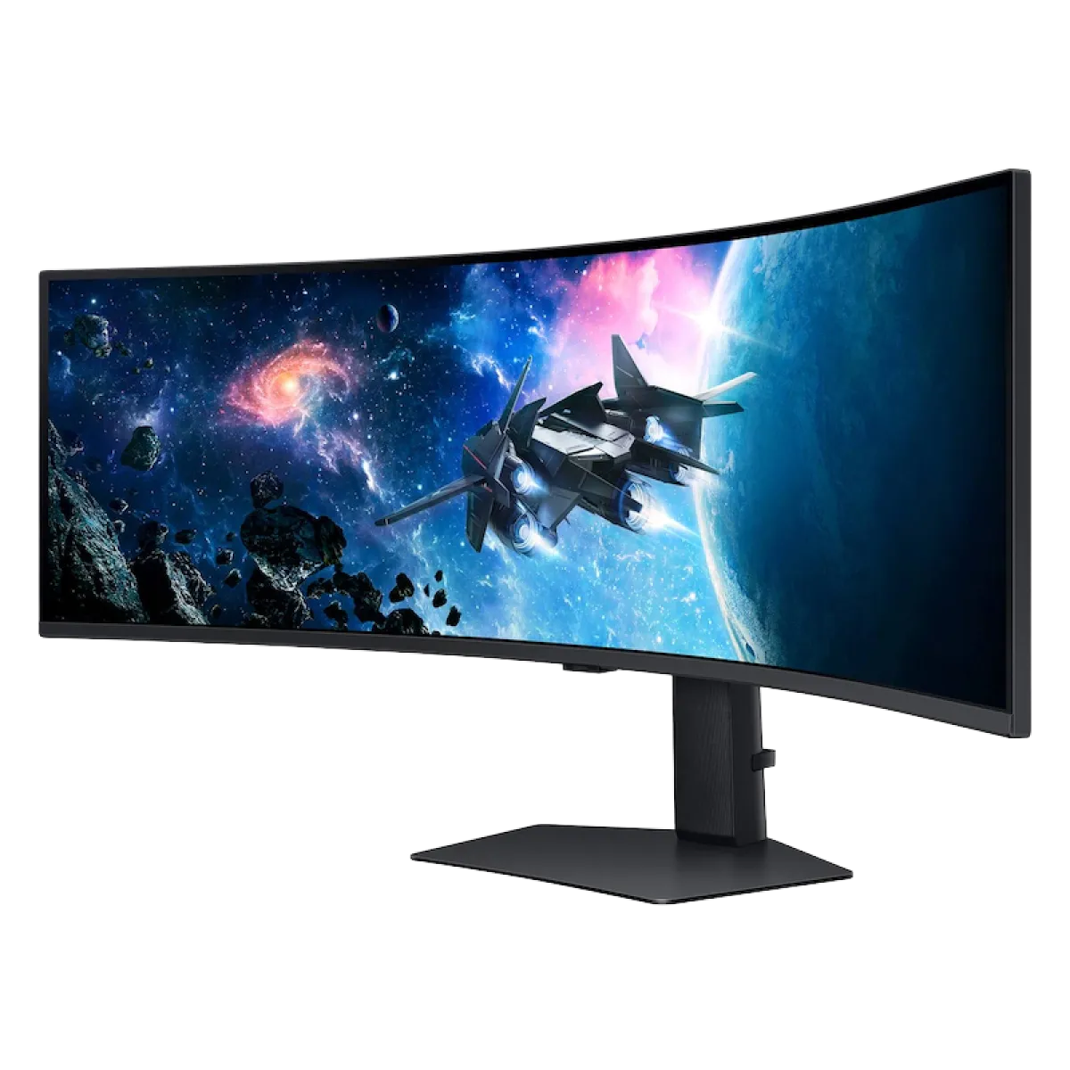 Samsung (S49CG954EM) 49" G9 Curved Gaming Monitor QD-OLED- 240Hz -0.03ms - 3Yrs -Silver Size: 49'' Panel Type: OLED Curved 1800R Resolution: DQHD (5,120 x 1,440) Brightness/Color: Brightness 200cd/m2 ;Color Gamut 99% VESA DisplayHDR True Black 400; HDR10+; HDR10+ Gaming Response Time: 0.03ms / 240Hz Max Refresh Rate Features: Eye Saver Mode, Flicker Free, Core Sync, Game Bar 2.0, HDMI-CEC, Ultrawide Game View,Auto Source Switch+, Adaptive Picture Speakers: 5W x 2ch; Adaptive Sound Ports: 1x HDMI; 1x DP; 3x USB; 1x MicroHDMI Color: Silver Stand Type: HAS (Tilt / Pivot) Dimensions: 1193.8 x 528.32 x 236.22 (WxHxD, mm) Warranty: 3 Years Official Warranty
