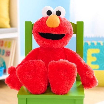 The Sesame Street Elmo Large Plush Toy is a cuddly, 45 cm tall toy made from soft polyester fibers, designed to provide comfort and stimulate imagination.